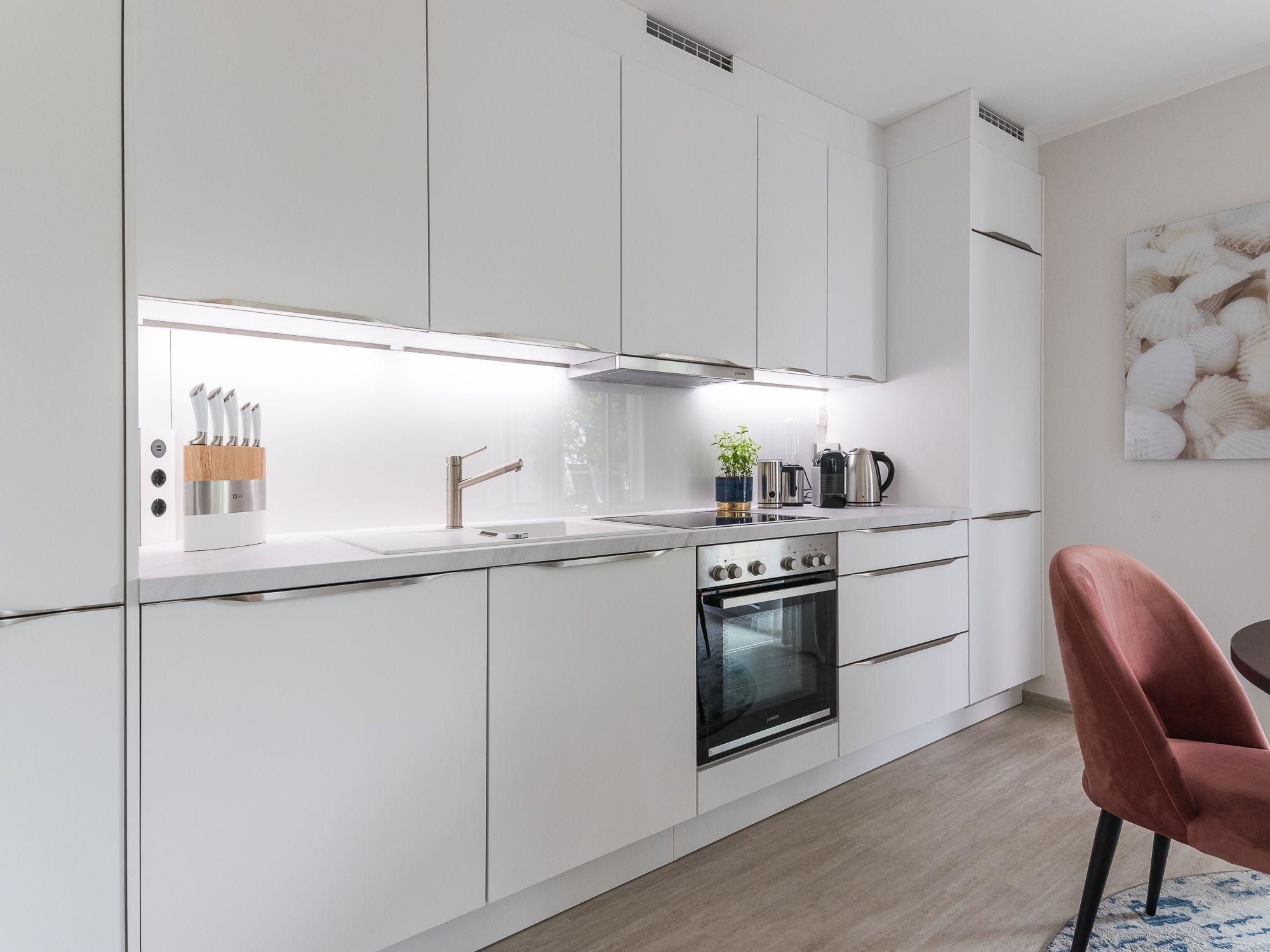 Die Wohnung ist allergikergeeignet und verfügt über Fußbodenheizung, Heizungen und einen Fahrstuhl. Ein Parkplatz, eine Waschmaschine und praktische Extras wie ein Bügeleisen runden das Angebot ab. Brettspiele und ein Sonnenschirm sorgen für Unterhaltung und Entspannung.