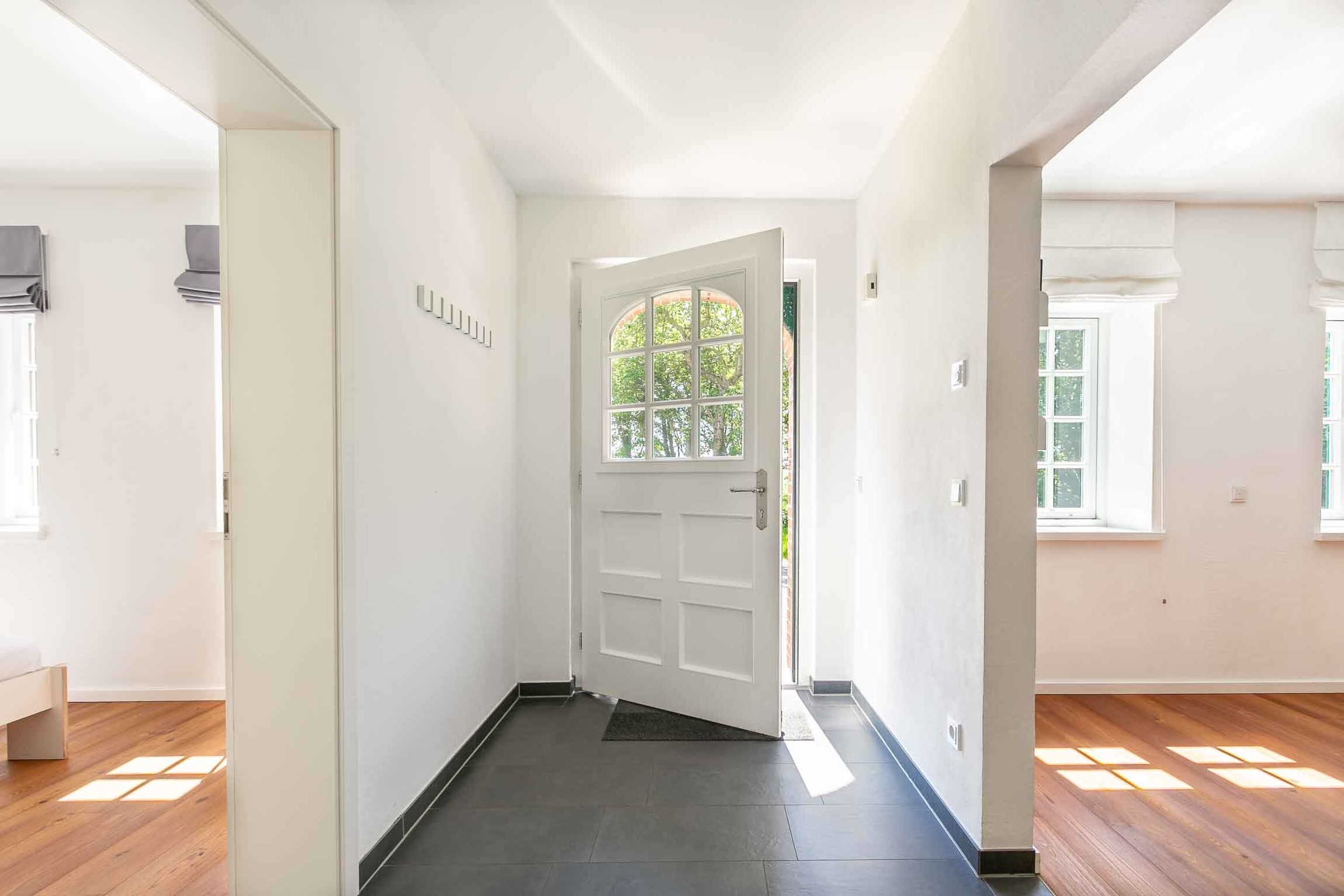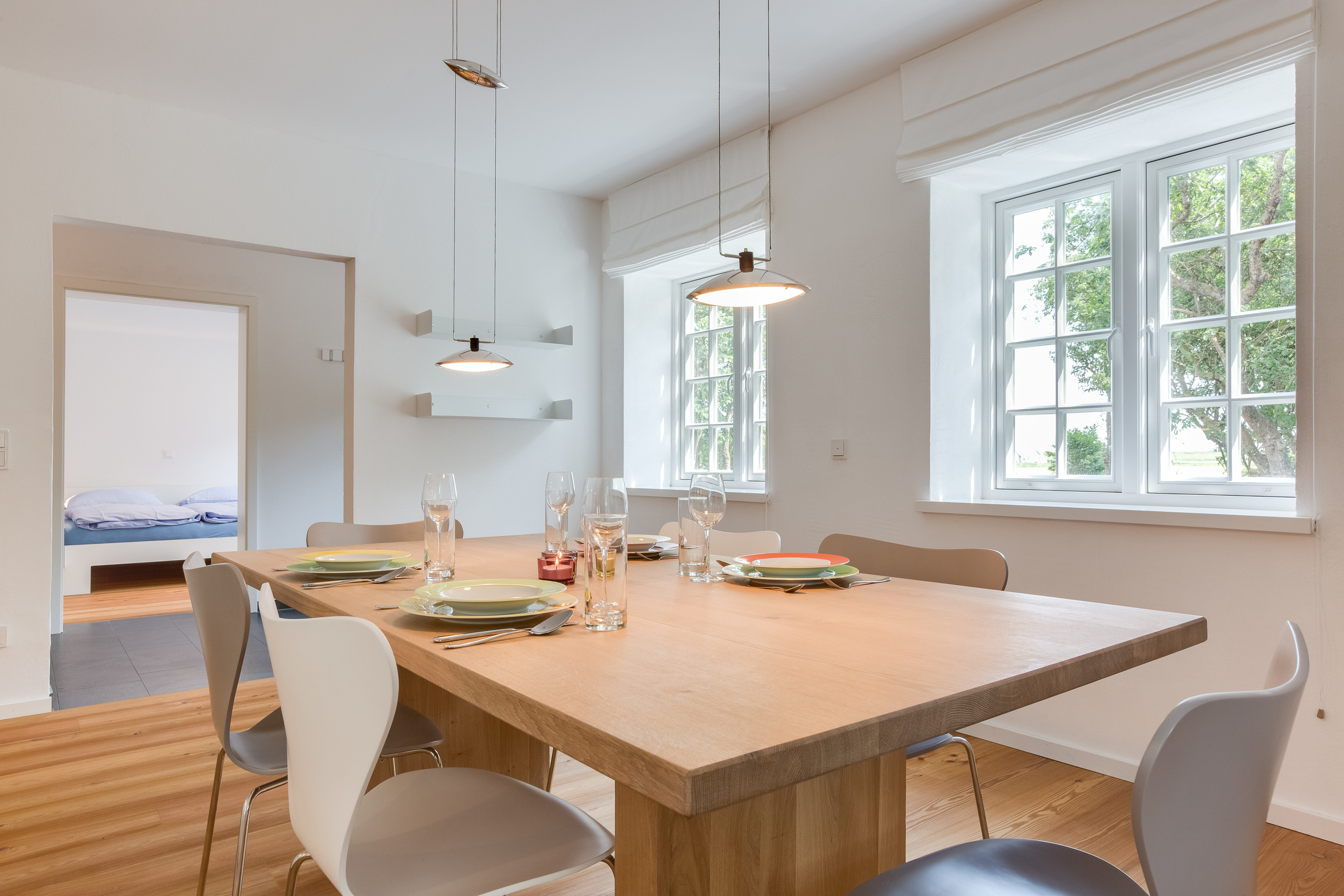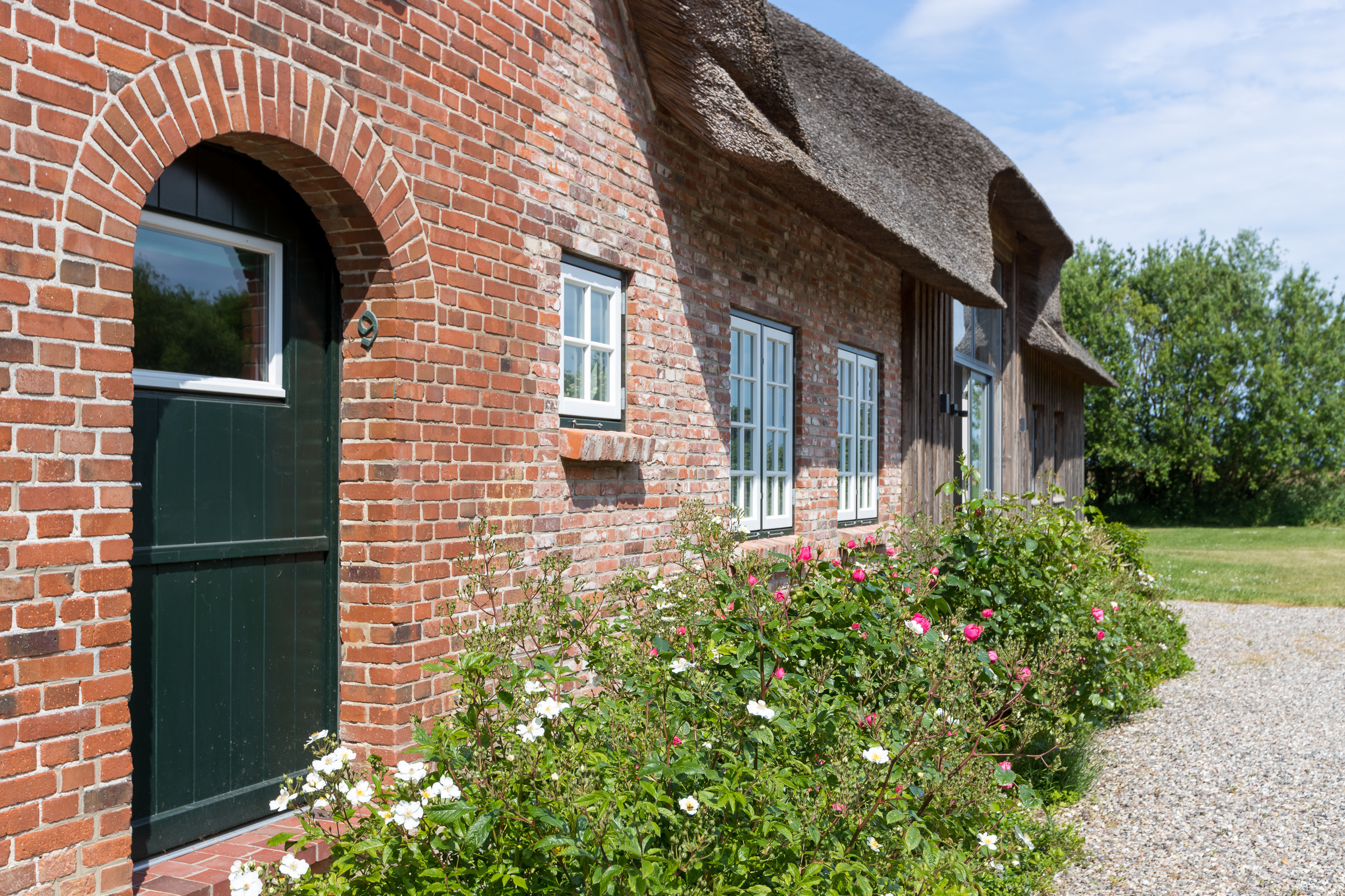Das weitläufige Gelände liegt lediglich 5 Auto- oder 10 Fahradminuten vom beliebten breiten Sandstrand von Sankt Peter-Ording entfernt. Die ehemalige Familienwohnung des Hofes ist freundlich, hell und hat eine fröhliche Athmosphäre. Die ungewöhnlich schöne Wohnung ist geräumig und komfortabel für 4 Personen geeignet. Sie verfügt über eine großzügige nach Süden ausgerichteteTerrasse mit hochwertigem Gartenmobiliar. Im Garten stehen zusätzlich Strandkörbe und Liegestühle für die Gäste zur Verfügung. Man kann bei Bedarf auch etwa zum Essen oder zum Treffen mit Freunden unter dem offenen Reetdach in der großen Lohdiele sitzen, die sich in der Mitte des Hauses befindet und allen Gästen zur Verfügung steht.