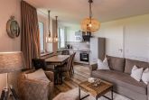 Die Wohnungen der Kategorie D3 R2 im Haus Elbaussicht verfügen über ein separates Schlafzimmer, einen Wohn-, Koch- und Essbereich und einem Balkon mit Elbblick.