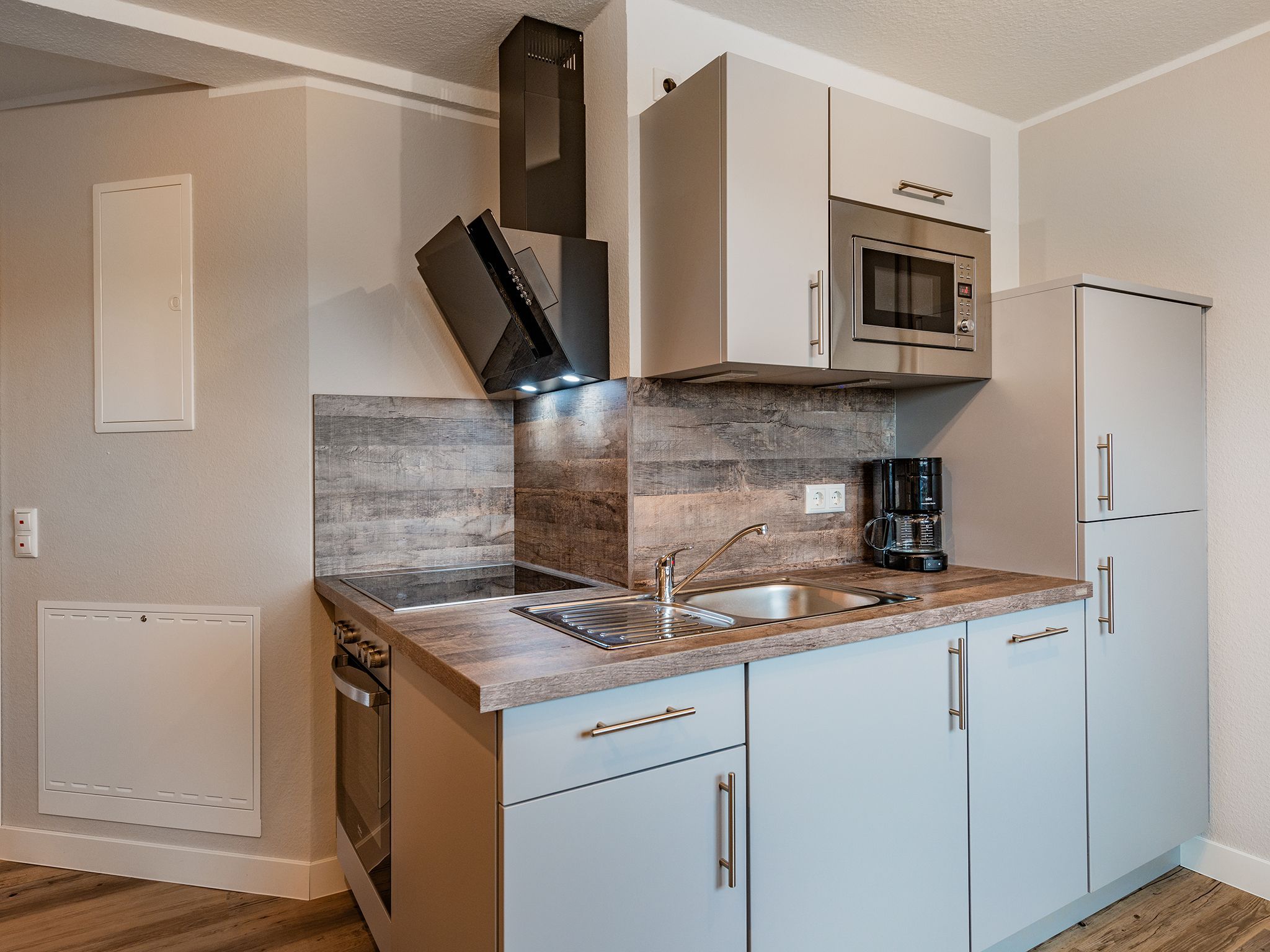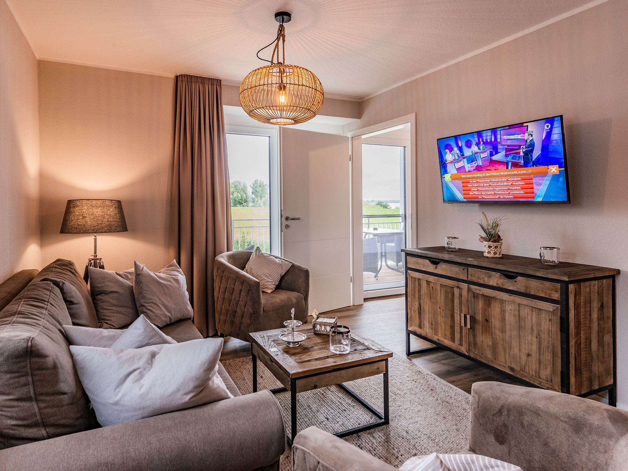 Die Wohnung D3 R3 im Haus Elbaussicht verfügt über zwei separate Schlafzimmer, einen Wohn-, Koch- und Essbereich und einer sonnigen Südterrasse.