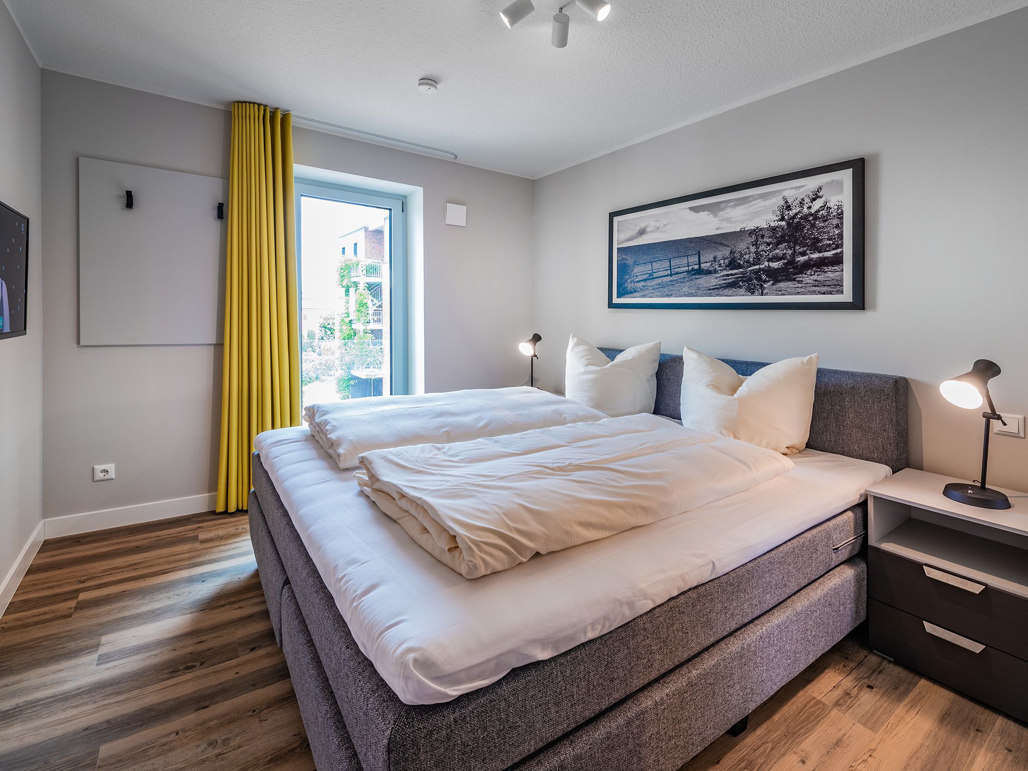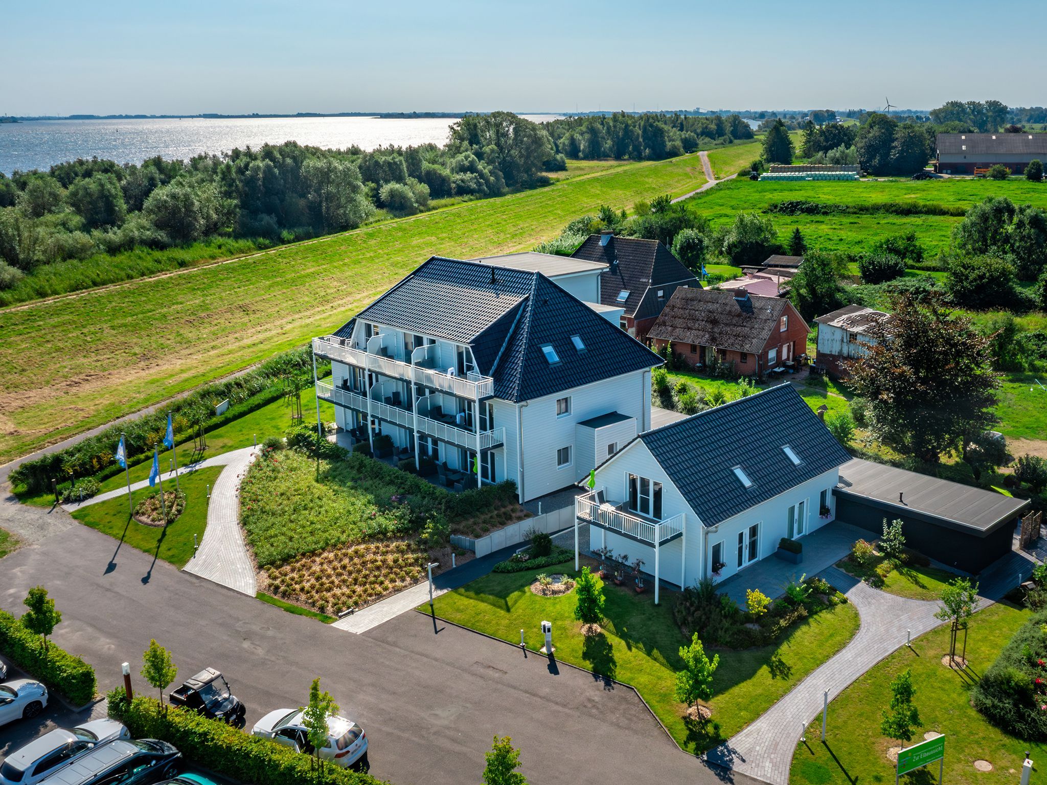 DIe Appartements der Kategorie D3 R3 in unserem Ferienhaus Elbbrise bieten Ihnen eine komfortable Ferienwohnung mit zwei separaten Schlafzimmern, einem offenen Wohn-, Koch- und Essbereich und einem Deichblick Balkon.