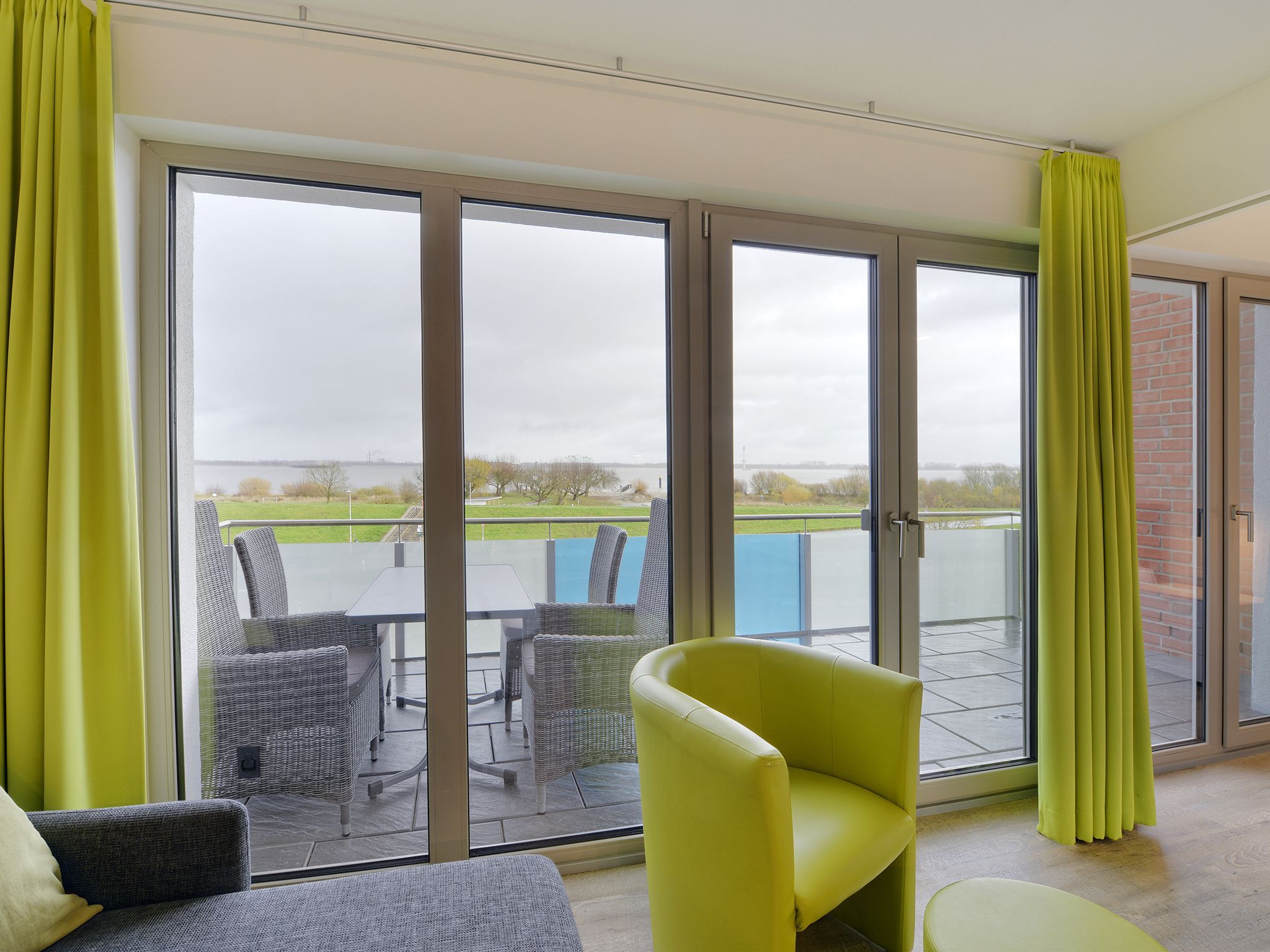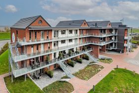 Die Appartements der Kategorie D3 R3 im Haus Lee verfügen über zwei separate Schlafzimmer, Wohn-, Koch- und Essbereich sowie einem Balkon mit direktem Blick auf die Elbe.