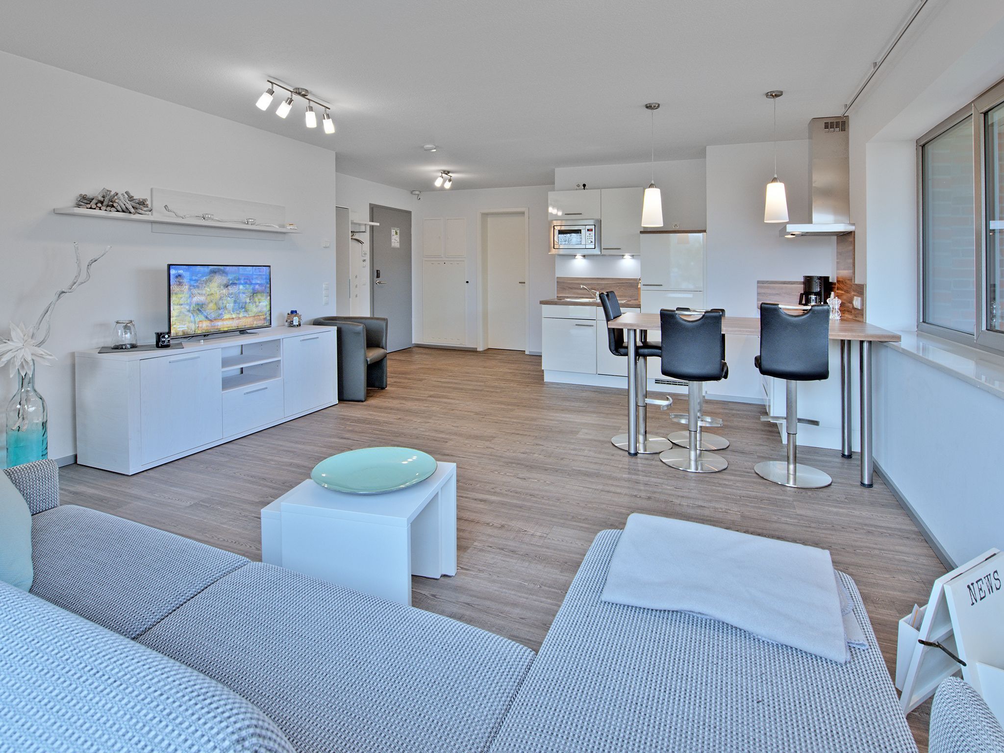 Die Appartements der Kategorie D2 R2 in unserem Ferienhaus LUV bieten Ihnen eine komfortable Ferienwohnung mit einem separaten Schlafzimmer, einem offenen Wohn-, Koch- und Essbereich sowie einer sonnigen Südterrasse, die zum Entspannen und Genießen einlädt.