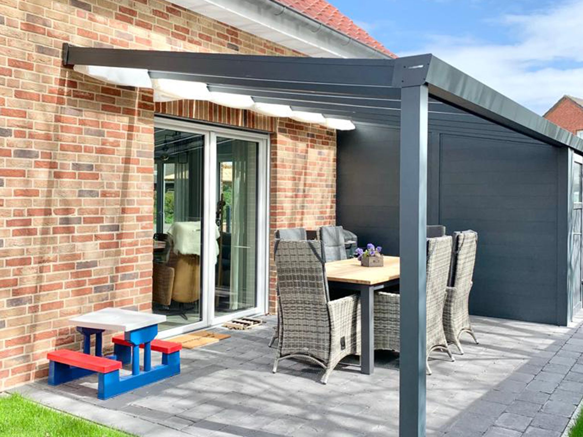 Im eigenen komplett eingezäunten Garten, finden wir tolle Spielmöglichkeiten für Kinder. Während die Kleinen sich austoben, finden die Erwachsenen gemütlich Platz unter dem Sonnenschirm und haben gleichzeitig die Kinder immer im Blick. Eine großzügige Terrassenüberdachung mit einem großen Tisch und Holzkohlegrill ist selbstverständlich in diesem Traumgarten vorhanden.