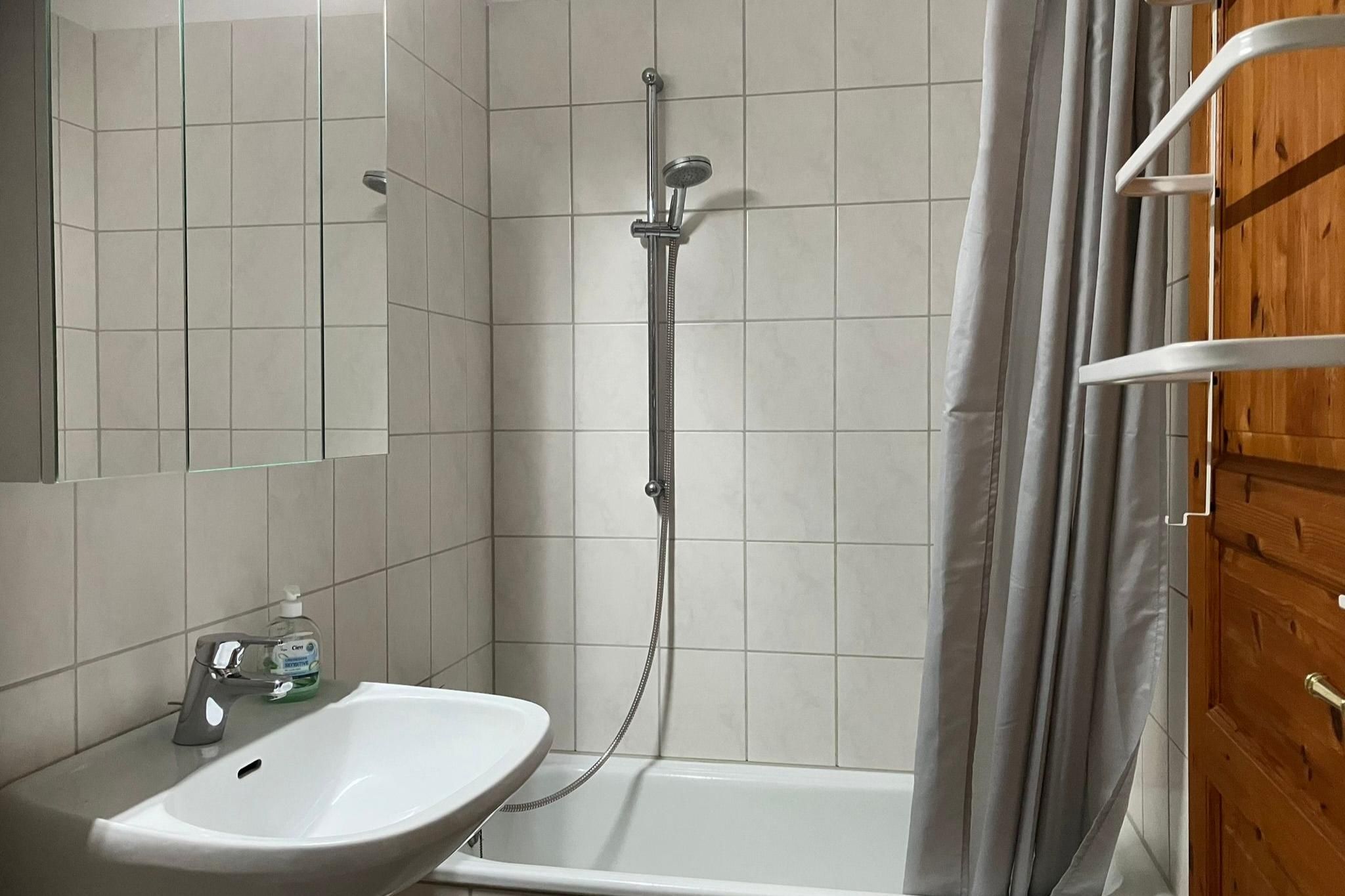 Raumaufteilung: 1 Schlafraum (1 Doppelbett), 1 Wohn-/Esszimmer, 1 Flur, 1 separate Küche, 1 Badezimmer mit Duschwanne.