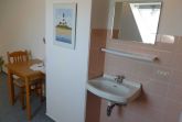 Die Wohnung verfügt über einen großen Schlafraum mit Doppelbett, ein weiteres Zimmer mit einem Einzelbett und Waschbecken, ein Wohnzimmer mit Sofa und TV, ein Badezimmer mit Dusche/ WC und eine Pantryküche mit Essplatz. Es gibt auch ein zusätzliches Gäste WC. Die Betten sind bei Anreise bezogen und Handtücher liegen für unsere Gäste bereit.
