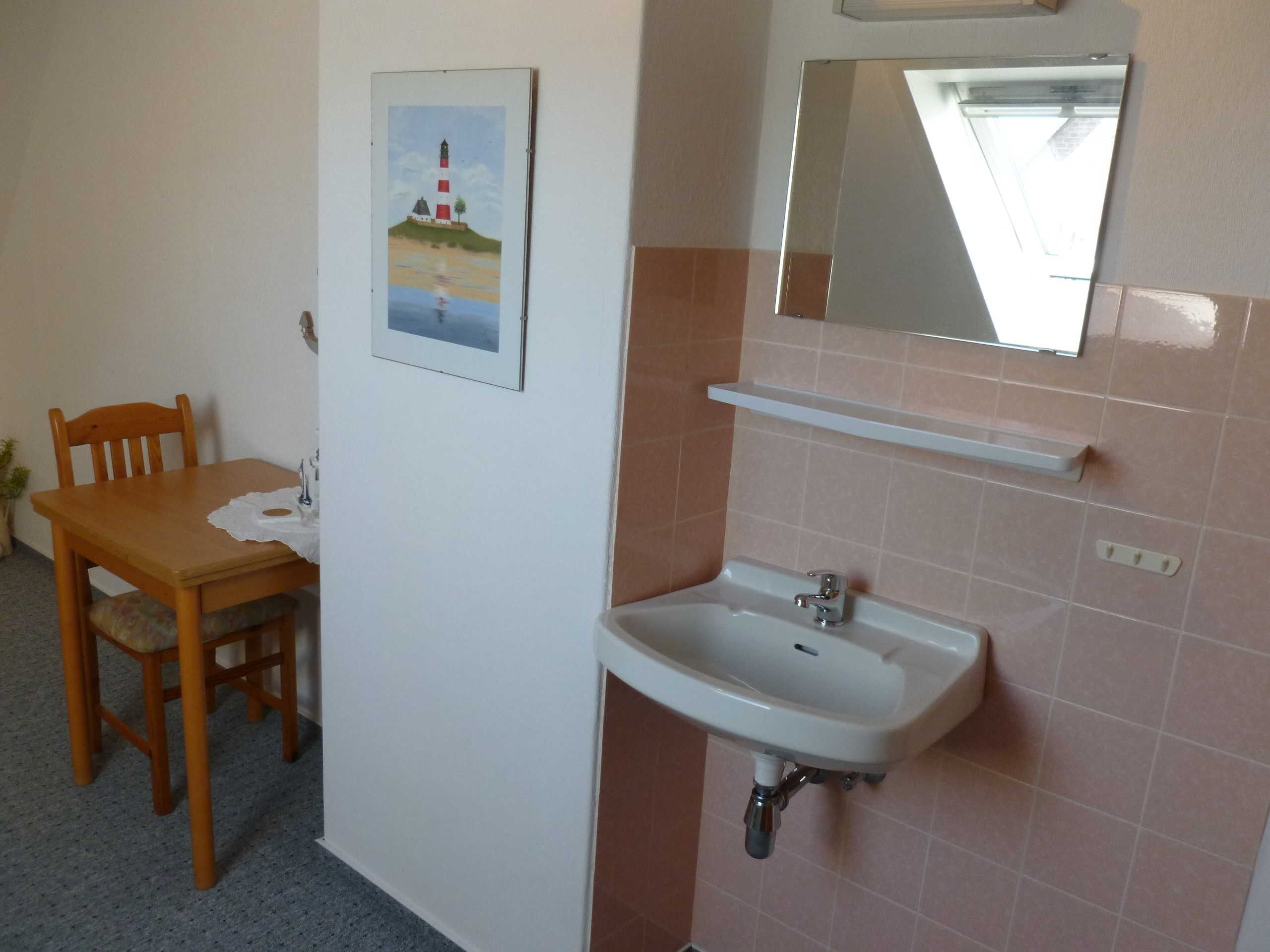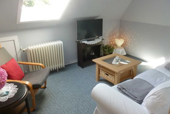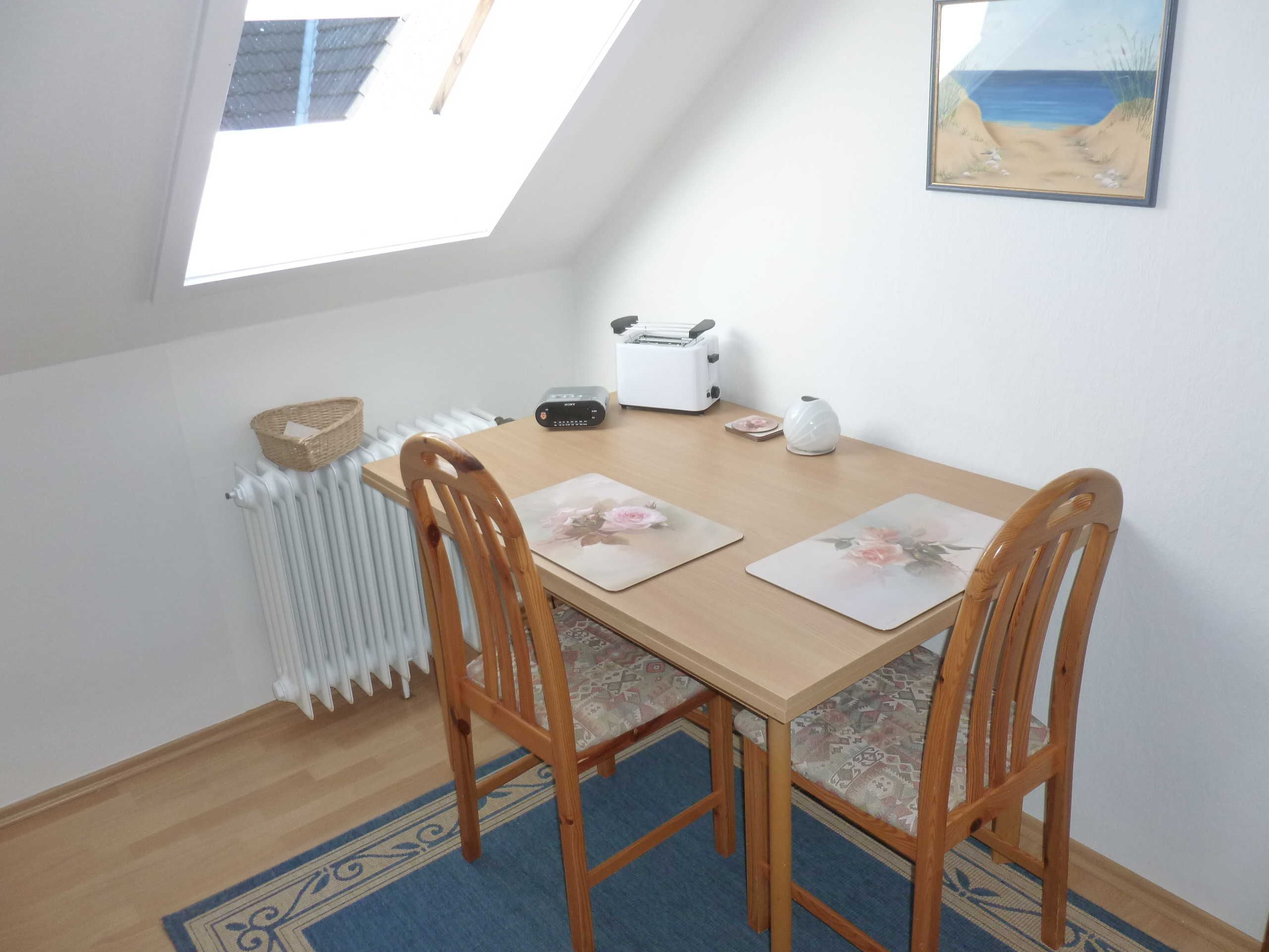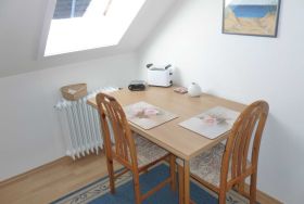 Unsere Ferienwohnung im Obergeschoss ist mit Liebe zum Detail eingerichtet. Das Appartement ist geeignet für zwei Erwachsene mit einem Kind oder für drei Erwachsene.