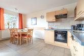 Die Ferienwohnung verfügt über ein gemütliches Schlafzimmer mit Doppelbett und ein weiteres Schlafzimmer mit zwei getrennt stehenden Betten. Das Wohnzimmer ist mit einer komfortablen Ledersitzgarnitur, einem Esstisch mit vier Stühlen sowie einem Flachbild-SAT-TV (FullHD/LED) und einem CD-Radio ausgestattet. Die integrierte, voll ausgestattete Küchenzeile lässt keine Wünsche offen.