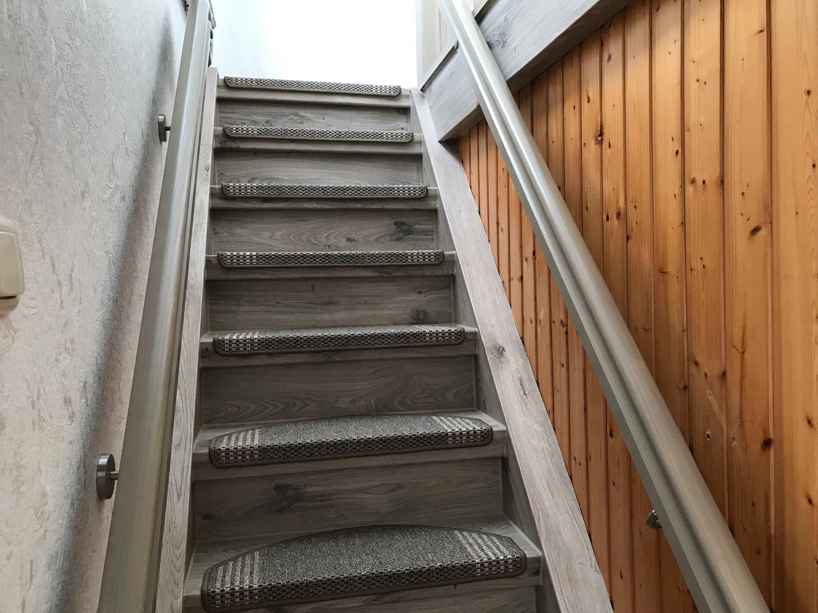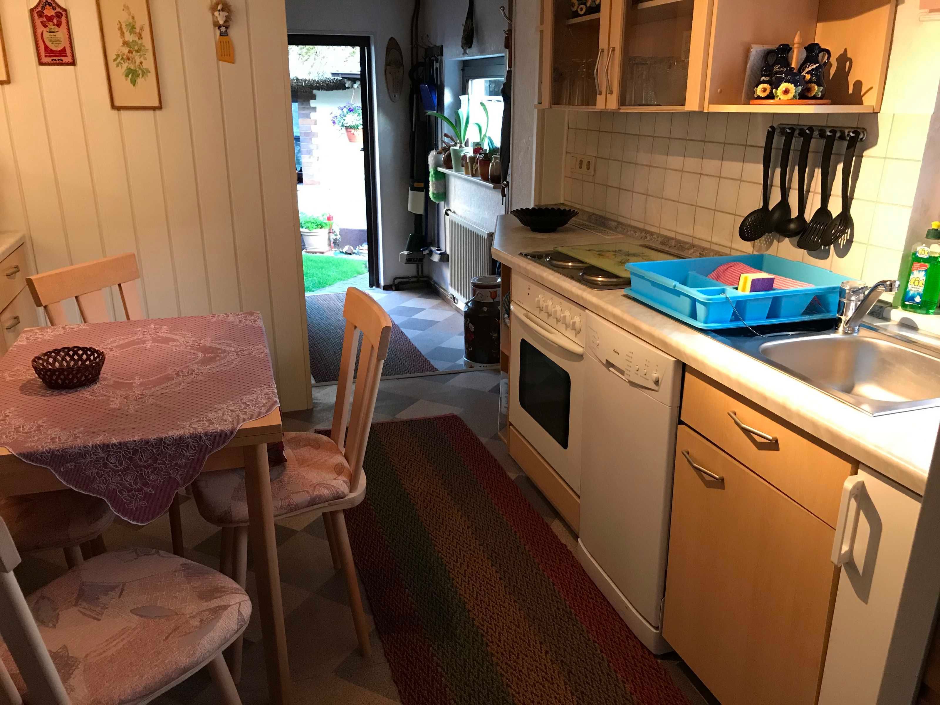 • Im Erdgeschoss: Küche (Küchenzeile mit Kühlschrank, Geschirrspüler, E-Herd, Mikrowelle, Kaffeemaschine, Toaster, Eierkocher, Wasserkocher, Hänge- und Beistellschrank komplett mit Geschirr und Essplatz)