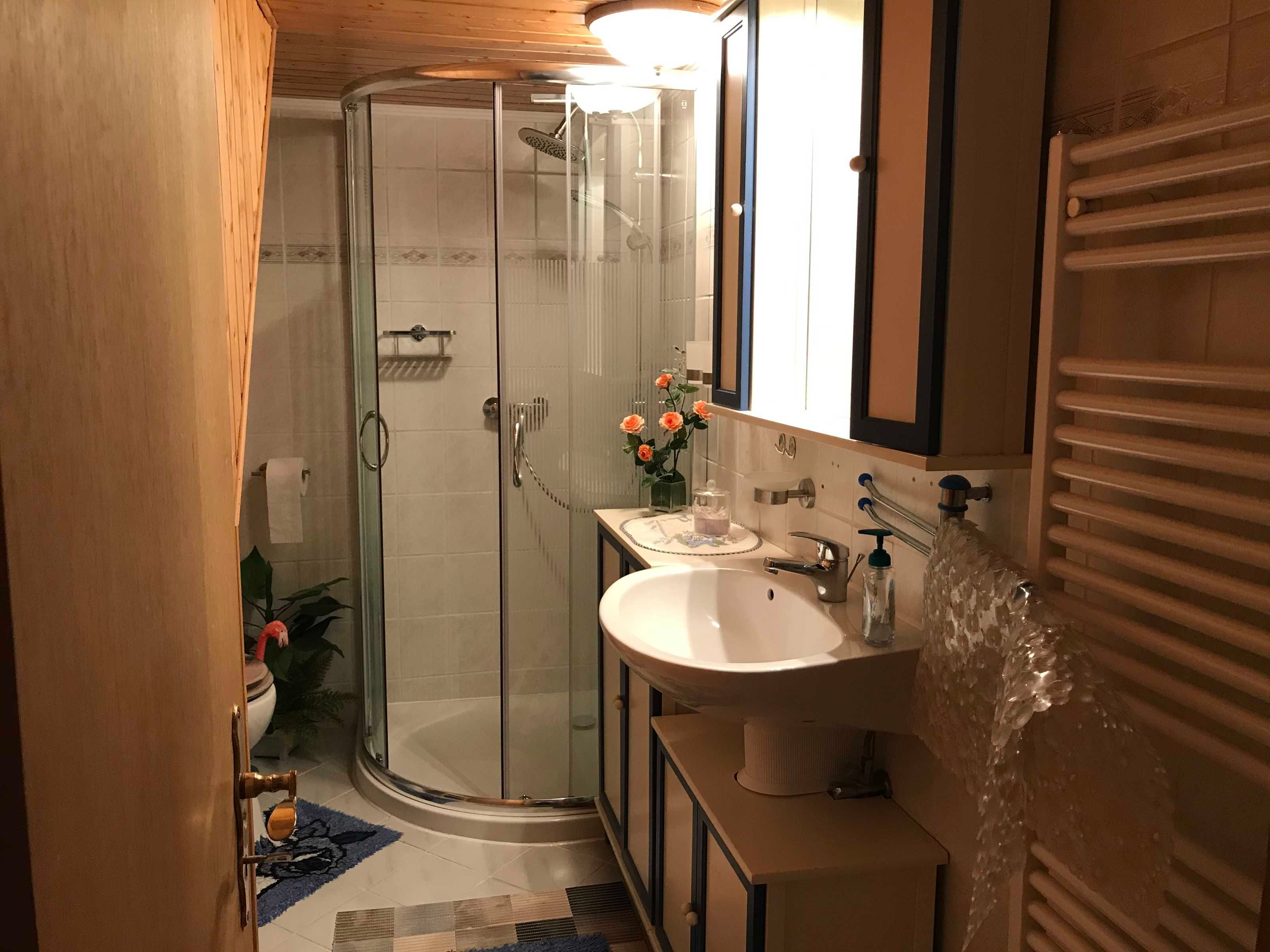 Die Küche mit Essplatz sowie das Bad mit Dusche/ WC befinden sich im Erdgeschoss. Über eine Treppe gelangen Sie ins Obergeschoss. Hier befindet sich der kombinierte Wohn-Schlafraum.