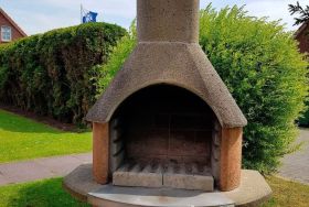 Von hier aus haben sie einen direkten Zugang zur grossen komplett eingezäunten Terrasse mit Gartenmöbeln mit Auflagen und Grillkamin in Südlage.