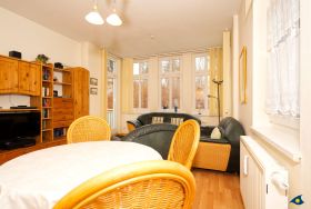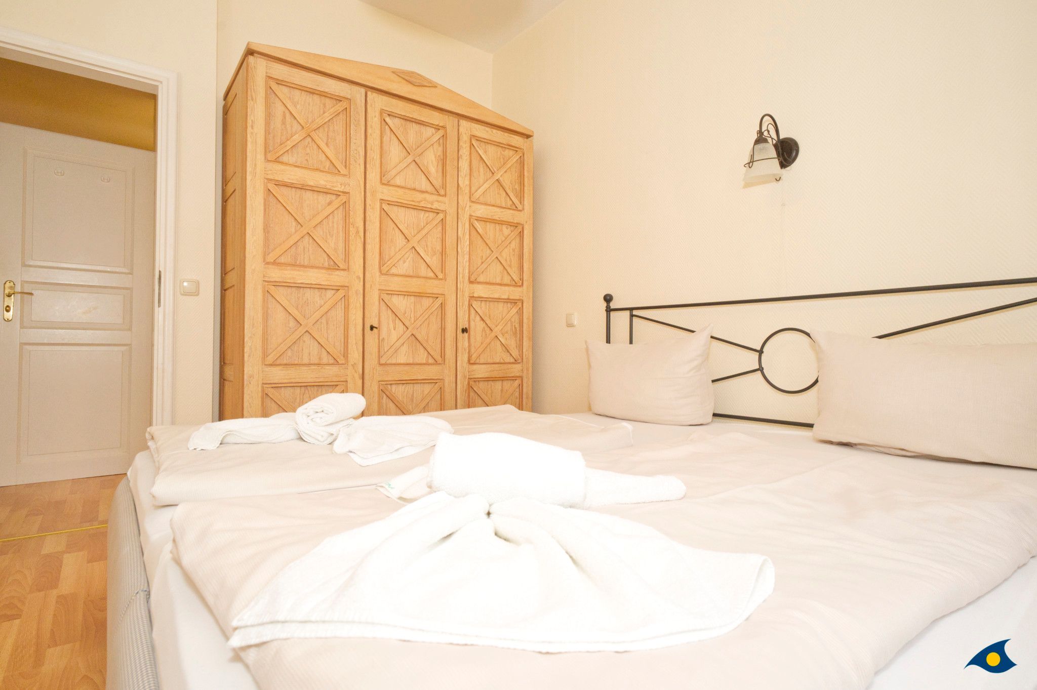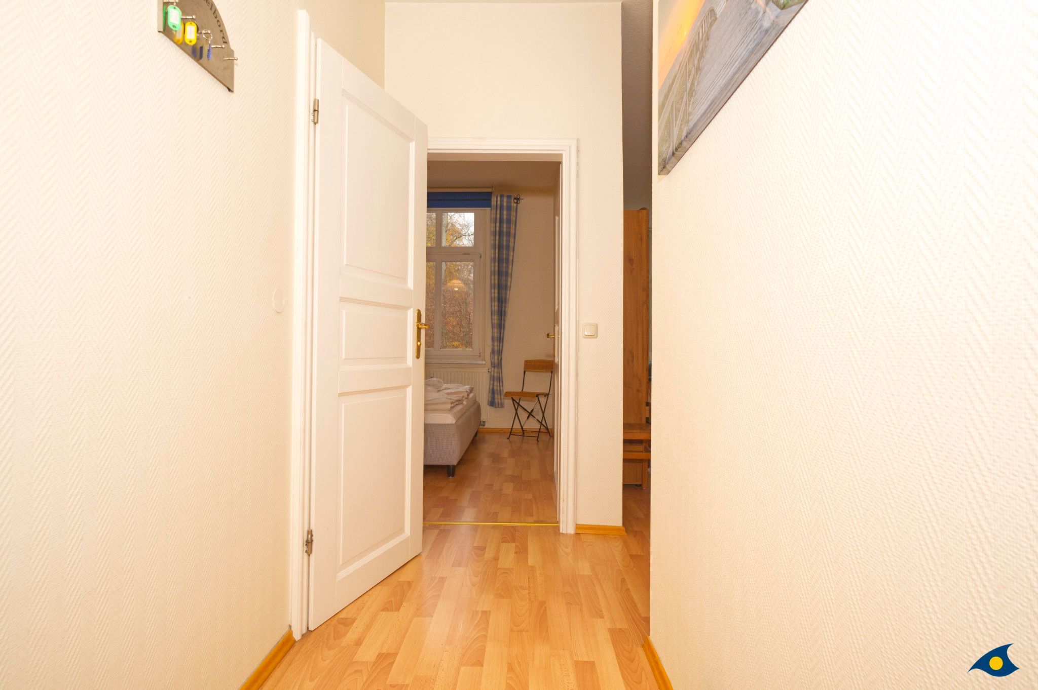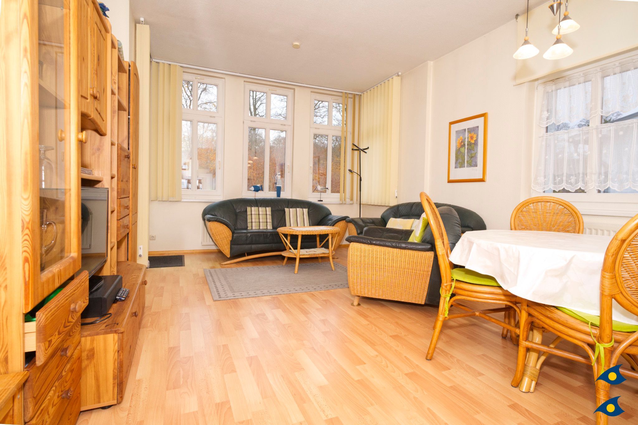 Die 3-Raum-Nichtraucher-Ferienwohnung befindet sich im 1. Obergeschoss des Gartenhauses der denkmalgeschützten Jugendstilvilla “Frieda“. Sie bietet mit 54 m² ausreichend Platz für bis zu 4 Personen. Die Wohnung verfügt über 2 separate Schlafzimmer, ein geräumiges Wohnzimmer mit Essbereich und einer voll ausgestatteten Küchenzeile mit Cerankochfeld, Geschirrspüler, Kühlschrank und Gefrierfach, die offen in den Wohnbereich integriert ist. Ein Badezimmer mit Dusche & WC und ein Balkon in Süd-West Ausrichtung mit Blick auf den weitläufigen Buchenpark, machen diese Ferienwohnung zu Ihrem Feriendomizil.