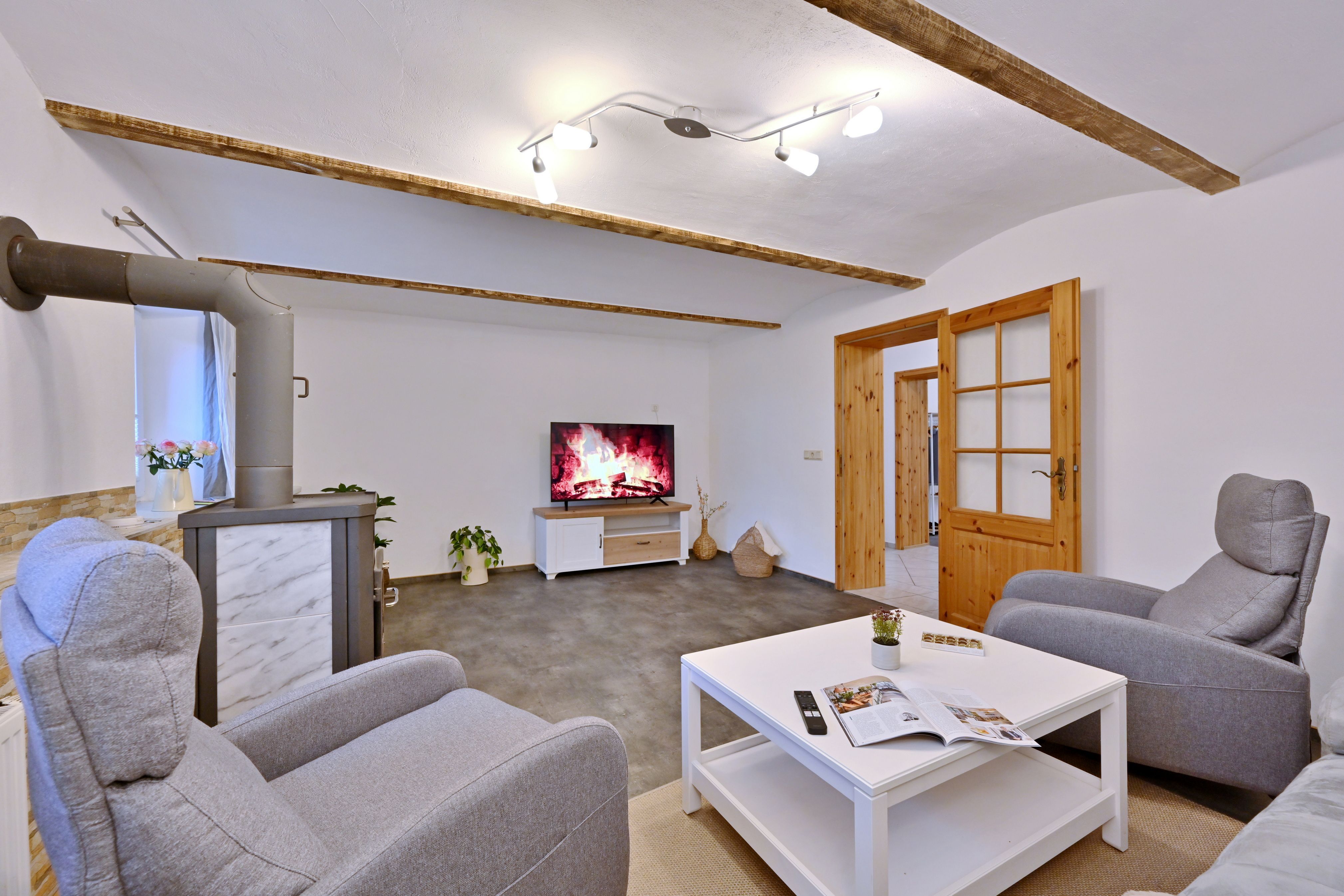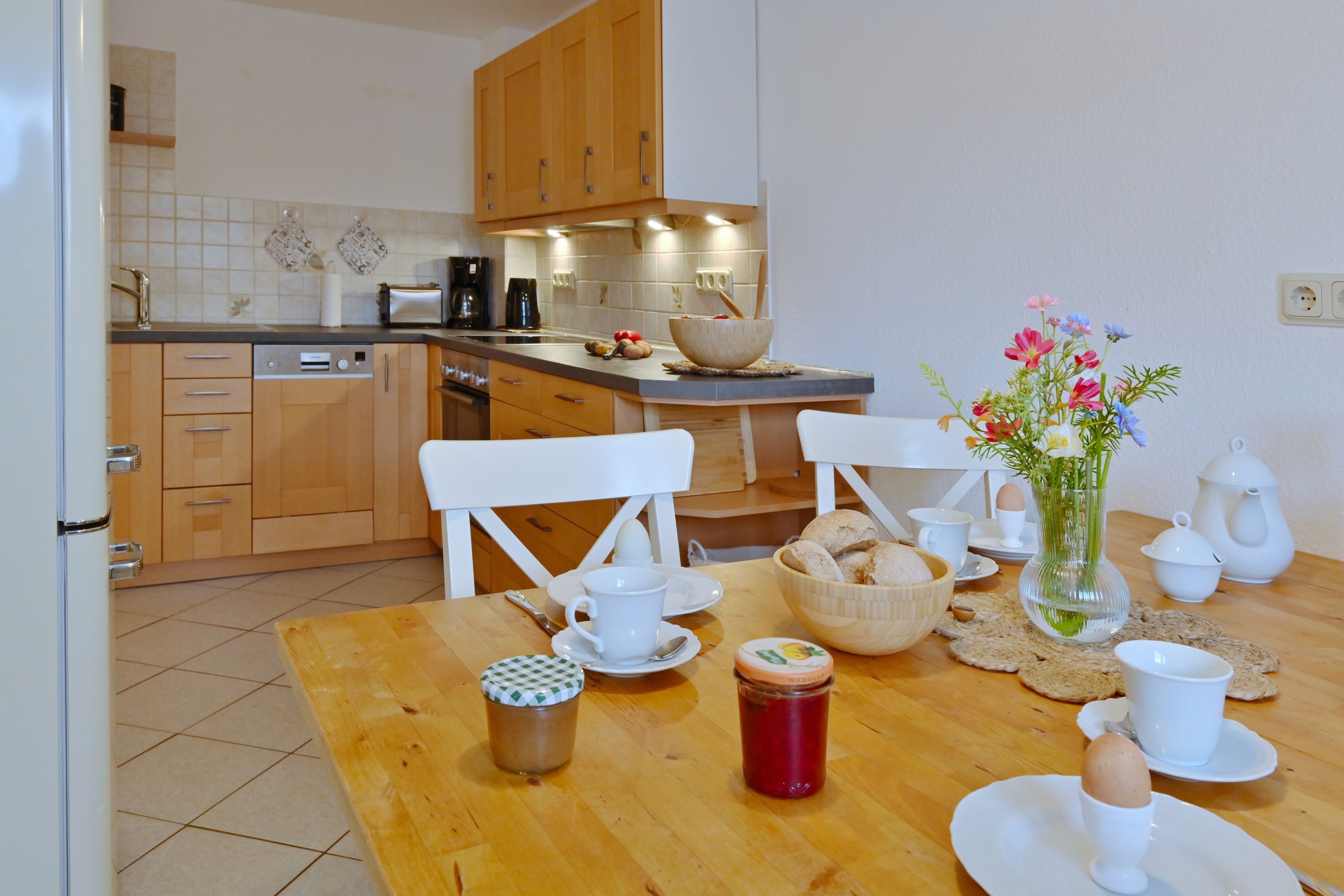 Im restaurierten Gutshaus Dumsevitz befindet sich diese Ferienwohnung, sie bestehen aus einem geräumigen Wohnzimmer mit Kamin, einem Schlafzimmer mit Doppelbett und einem mit zwei Einzelbetten, sowie ein Bad mit Dusche, Badewanne und WC. Die Ferienwohnung hat eine Wohnfläche von ca. 90 m², für 4 Personen.