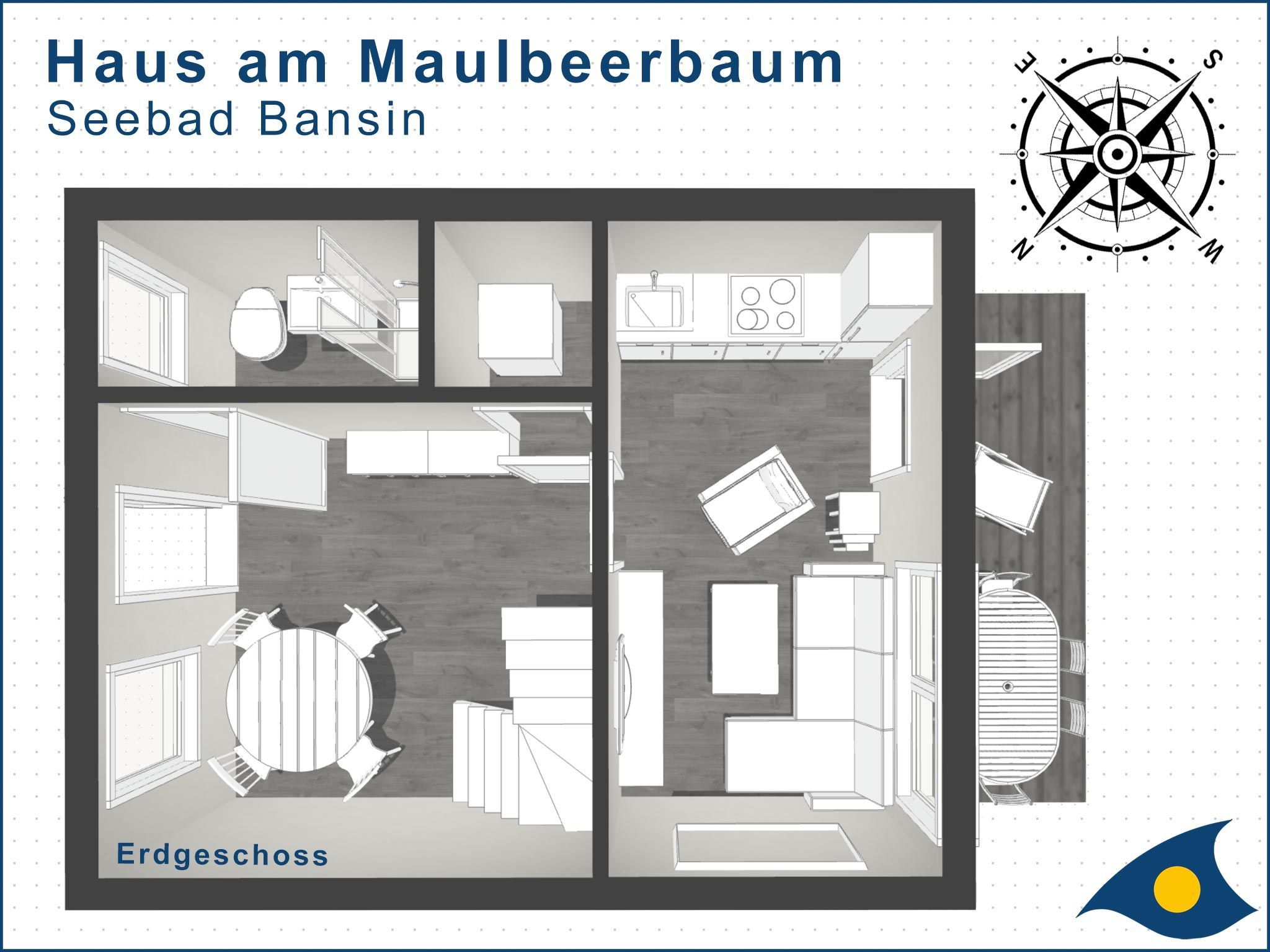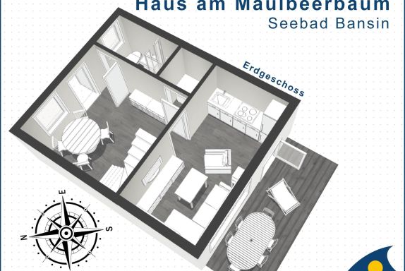 Das Ferienhaus am Maulbeerbaum ist ein Holzhaus mit ganz besonderem Urlaubscharme. Durch die hohen Räume und die offen liegenden Tragebalken entsteht ein großzügiges Raumgefühl. Die ca. 60 qm Wohnfläche verteilen sich über zwei Etagen und bieten Platz für vier Personen. Die Terrasse lädt zum Relaxen und gemeinsamen Essen im Freien ein.