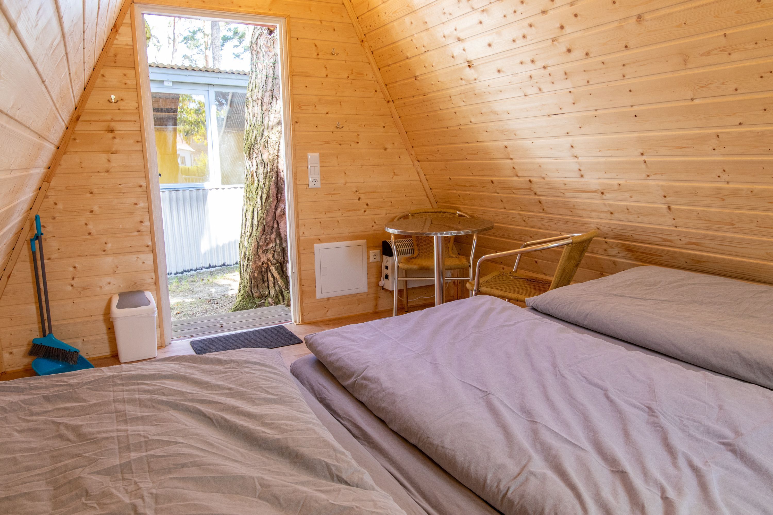 Die Familienfinnhütten befinden sich am Rand des Ostseecamping Peenemündung im Fischerdorf Freest und ermöglichen ein wetterfestes Campen für 3 Personen. In den 9 m² großen Finnhütten befinden sich eine Bettebene (270x200, 3 Matratzen) und ein Bistrotisch mit 2 Stühlen. Die drei Sanitärbereiche (WC, Waschraum, Dusche) werden gemeinschaftliche genutzt und liegen verteilt auf dem Campingplatz. Vor Ort stehen eine Gemeinschaftsküche, ein Outdoorgrill, Picknickbänke und ein Kulturraum, der bei schlechtem Wetter gut genutzt werden kann, zur Verfügung.