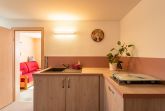 Die Wohnung erreichen Sie über eine kleine Treppe mit 5 Stufen nach unten. Sie bietet eine neue und moderne Ausstattung, und WLAN.