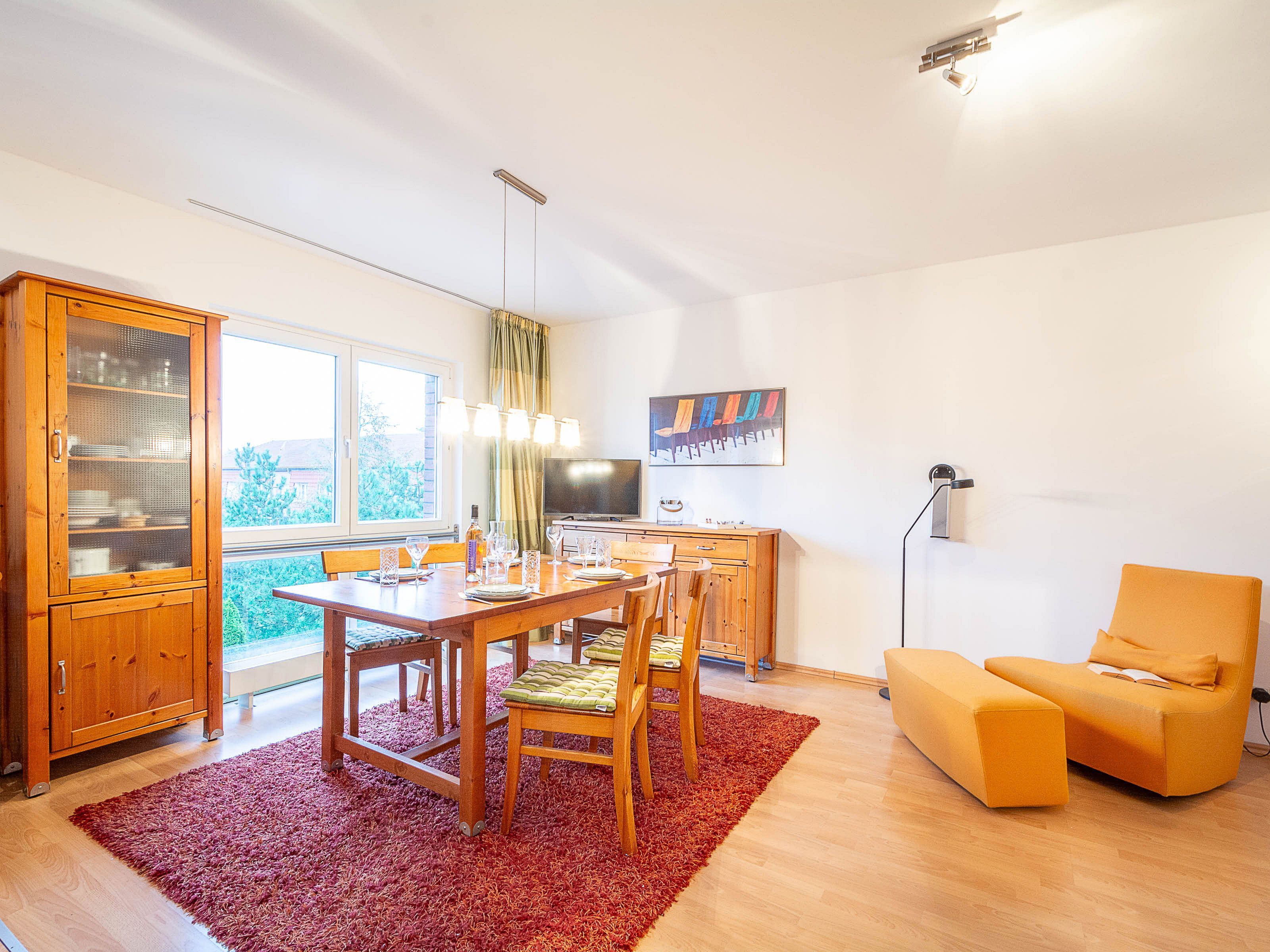 Herzlich willkommen in der Wohnung Nr. 32 in der Residenz Dünengarten! Die helle und lichtdurchflutete 3-Raum-Maisonettewohnung befindet sich im 2. Obergeschoss des Hauses und verläuft über zwei Etagen bis ins Dachgeschoss. Auf 74 qm Wohnfläche können hier bis zu 4 Personen erholsame Urlaubstage genießen. Es empfangen Sie ein gemütlicher Wohn-und Essbereich mit einer offenen Küchenzeile, ein Schlafzimmer, ein Duschbad sowie im oberen Geschoss ein kombinierter Wohn und Schlafbereich mit Dachterrasse.