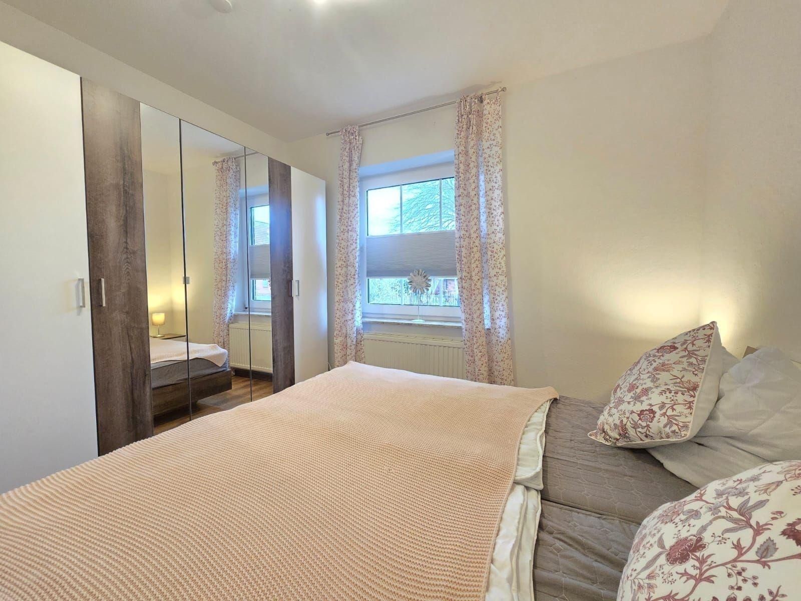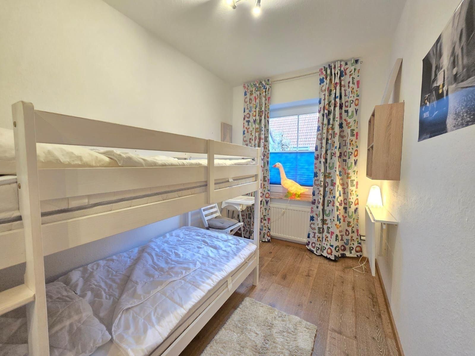 Die Ferienwohnung bietet eine komfortable und allergikergeeignete Unterkunft mit zwei Schlafzimmern, darunter ein Doppelbett und zwei Einzelbetten. Die offene Küche ist modern ausgestattet und verfügt über einen Elektro-/Gasherd, Geschirrspüler, Backofen, Kühlschrank sowie eine Kaffeemaschine und einen Toaster. Für Familien gibt es einen Kinderhochstuhl und eine Gefriermöglichkeit. Der Esstisch lädt zu gemeinsamen Mahlzeiten ein. Das Badezimmer mit Fenster bietet ein Duschbad, einen Haartrockner sowie ein Starterset mit Seife, Duschgel und Toilettenpapier. Im gemütlichen Wohnzimmer steht ein Sofa und ein TV bereit. Weitere Annehmlichkeiten umfassen WLAN, einen Parkplatz, Brettspiele für die ganze Familie und Kinderspielzeug. Die Wohnung ist effektiv beheizt und rauchmeldersicher. Ein Starterset für Reinigungsmittel, Geschirrtücher und Gewürze ist ebenfalls vorhanden. Ideal für einen erholsamen Aufenthalt.