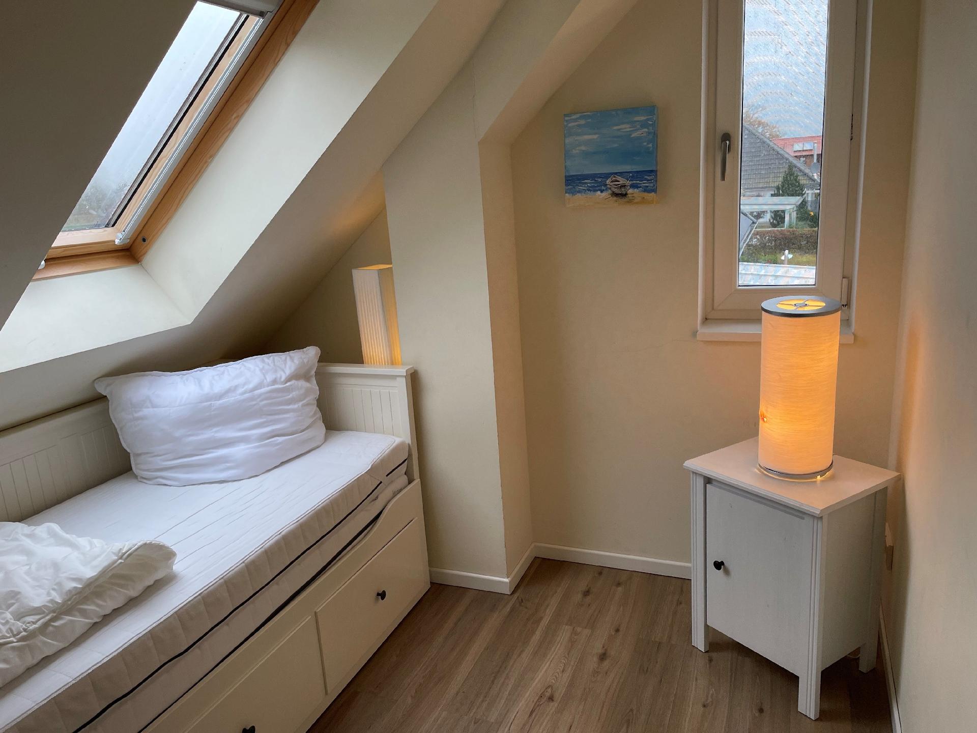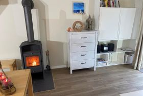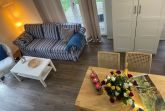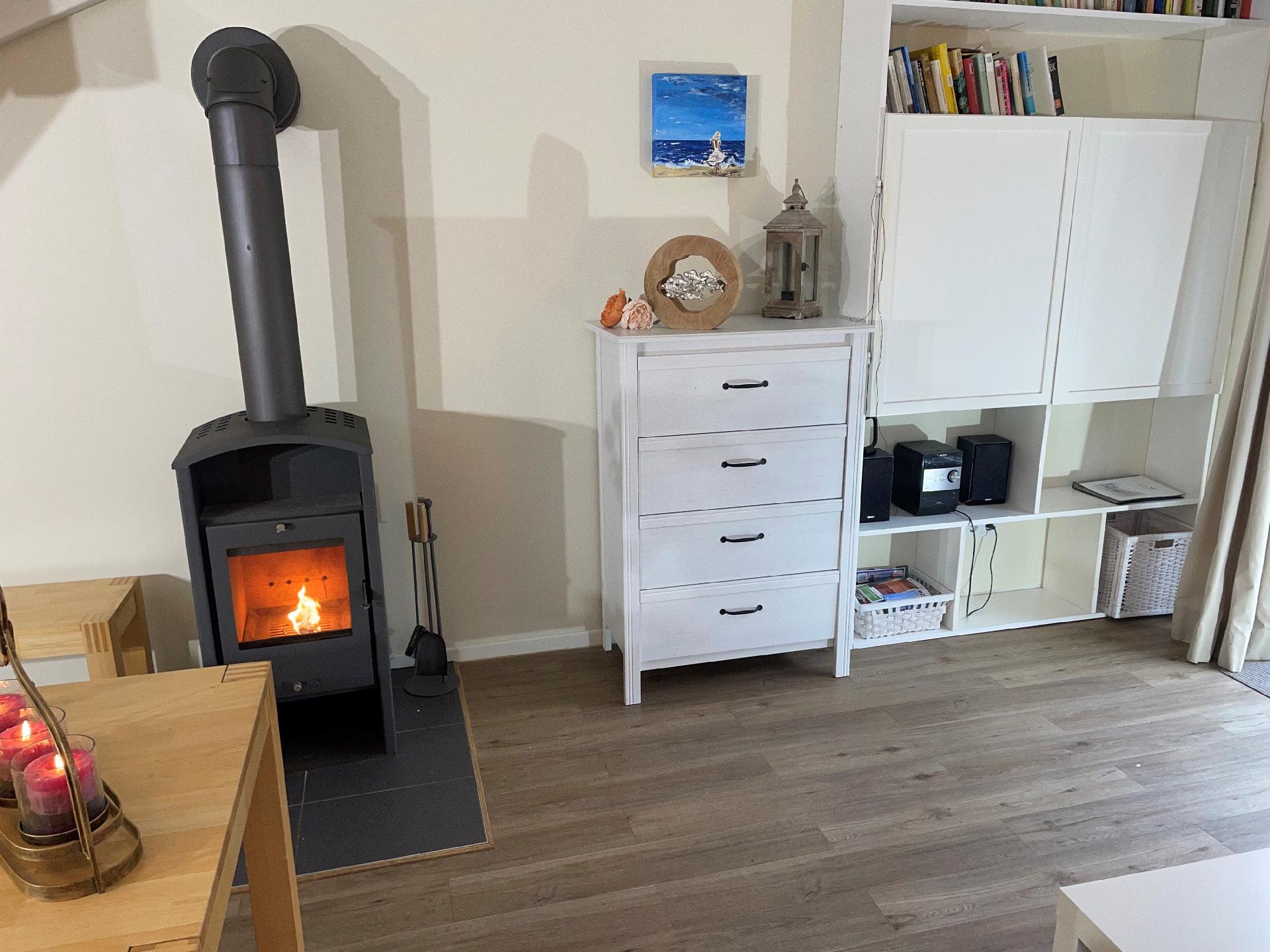 Im Inneren der Ferienwohnung im Erdgeschoss erwartet die Gäste eine einladende Atmosphäre. Der offene Kamin bildet das Herzstück des Wohnbereichs und sorgt für gemütliche Abende in ansprechender Atmosphäre. Die Wohnung ist praktisch aufgeteilt und verfügt über ein voll ausgestattetes Bad. Drei gemütliche Schlafzimmer im Obergeschoss bieten nach einem ereignisreichen Tag den idealen Rückzugsort. Eine weiträumige Aufteilung ermöglicht es jedem Gast, seinen eigenen Ruhebereich zu finden.