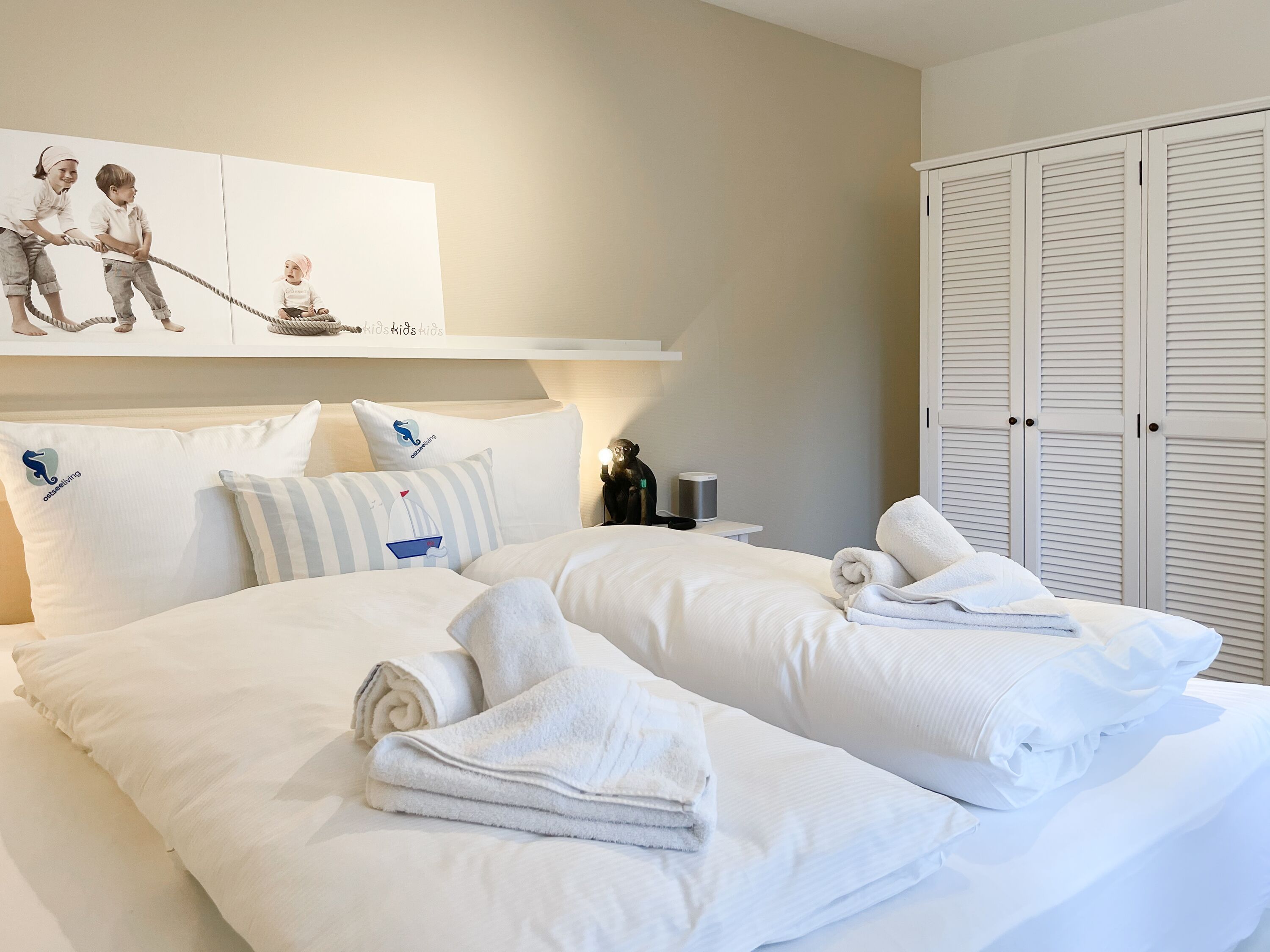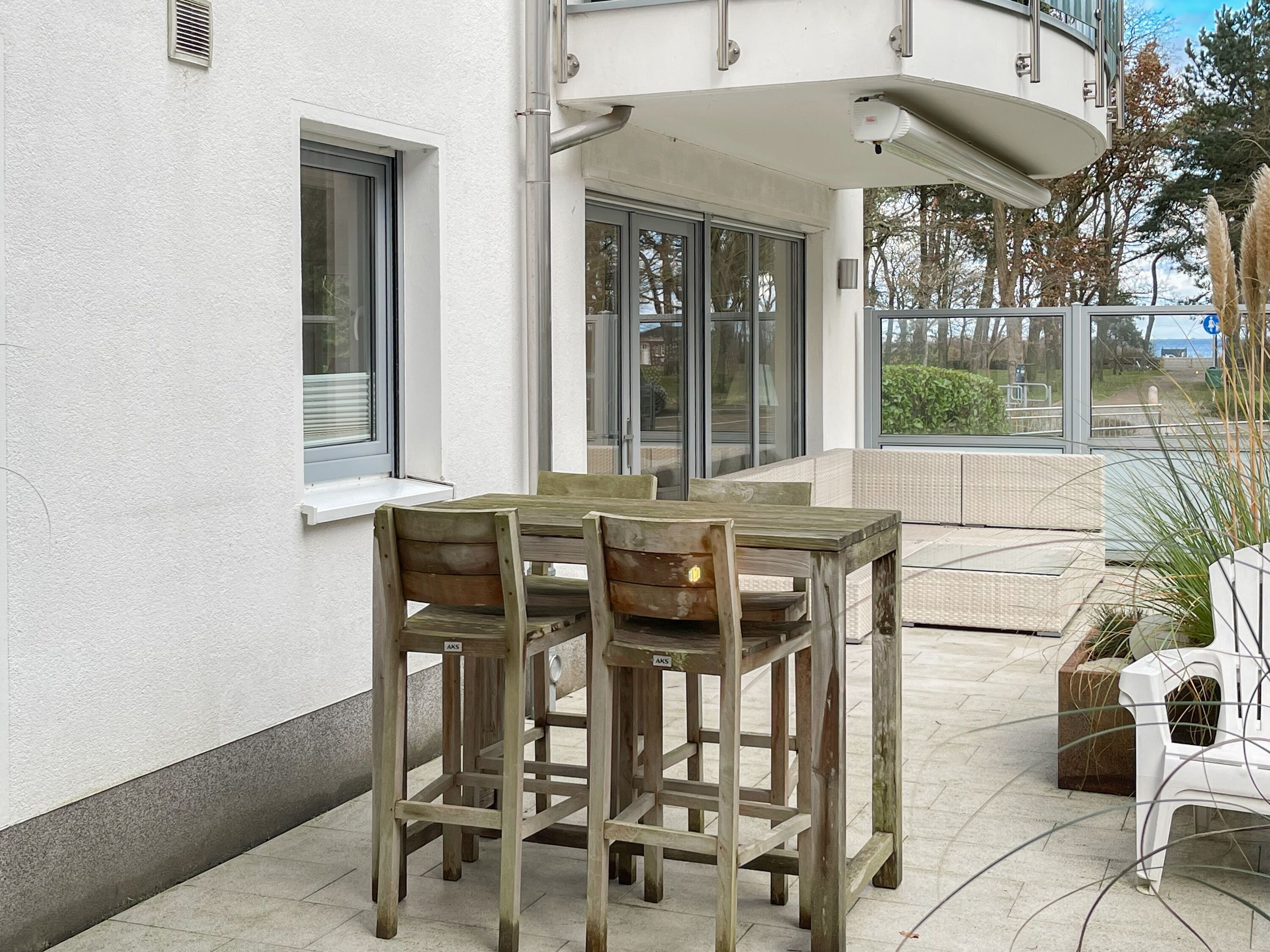 Ein absolutes Highlight dieser Wohnung ist die große Terrasse in Südost-Ausrichtung mit gemütlichen Loungemöbeln, Markise und Blick bis auf die Ostsee. Die Terrassentür lässt sich mit dem Hausschlüssel öffnen und dient als privater Eingangsbereich, sodass Sie direkt über die eigene Terrasse und durch den Garten mit wenigen Schritten am Strand sind. Die Ferienwohnung ist äußerst großzügig geschnitten, gut ausgestattet und geschmackvoll eingerichtet, sodass ein hoher Wohnstandard in einem schönen Ambiente gewährleistet ist. Bodentiefe Fenster sorgen für helle und sonnige Räumlichkeiten und ermöglichen einen schönen Blick bis auf die Ostsee. Alle Fenster sind mit elektrischen Außenjalousien versehen und die Fußbodenheizung sorgt für ein angenehmes Raumklima. Es erwartet Sie ein großzügiger Wohnbereich, eingerichtet mit einem gemütlichen Sofa, TV, WLAN und Sonos Anlage. Die offene Luxusküche mit Insel und angrenzendem Essbereich ist bestens ausgestattet und macht Lust auf gemeinsames Kochen.  Es stehen zwei separate Schlafzimmer mit Doppelbetten (180x200) und TV zur Verfügung.  Das Bad ist sehr hochwertig mit Walk IN Dusche und integrierter Waschmaschine und Trockner. Ein separates Gäste WC ist ebenfalls vorhanden. Das Haus am Meer verfügt über einen Fahrstuhl und eine Tiefgarage (Einfahrtshöhe 2 m), in der ein fester Stellplatz reserviert ist. Ein Fahrradkeller ist vorhanden.