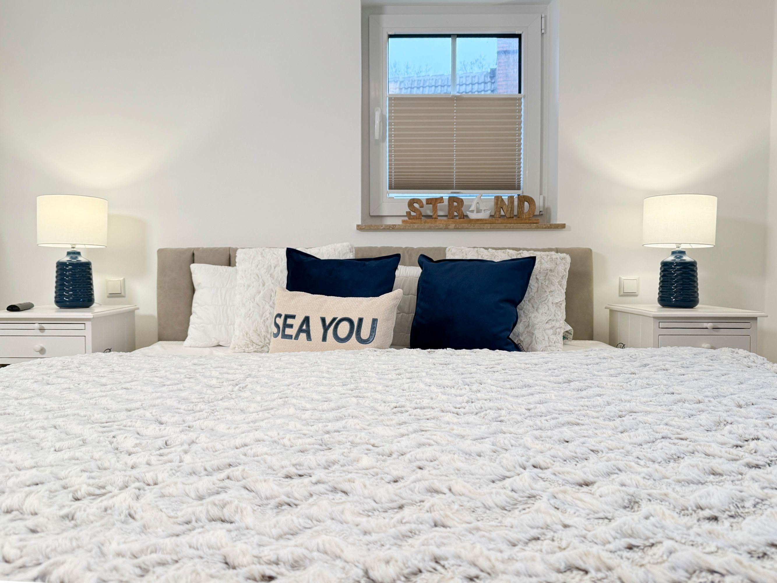 • Hauptschlafzimmer mit komfortablem Boxspringbett (180 x 200 cm) und TV