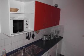 Unsere Ferienwohnung befindet sich an einer ruhigen Anliegerstraße. Sie ist komfortabel und geschmackvoll eingerichtet. Im großen und freundlichen Wohnzimmer befinden sich ein Essplatz, eine Doppelbettcouch sowie ein Fernseher mit Kabelanschluss. Das Schlafzimmer verfügt über einen geräumigen Kleiderschrank und 2 Betten. Bei Bedarf kann ein zusätzliches Kinderbett aufgestellt werden. Die Küche ist mit Herd, Kühlschrank, Spülmaschine, Kaffeemaschine, Toaster und Mikrowelle vollständig eingerichtet.