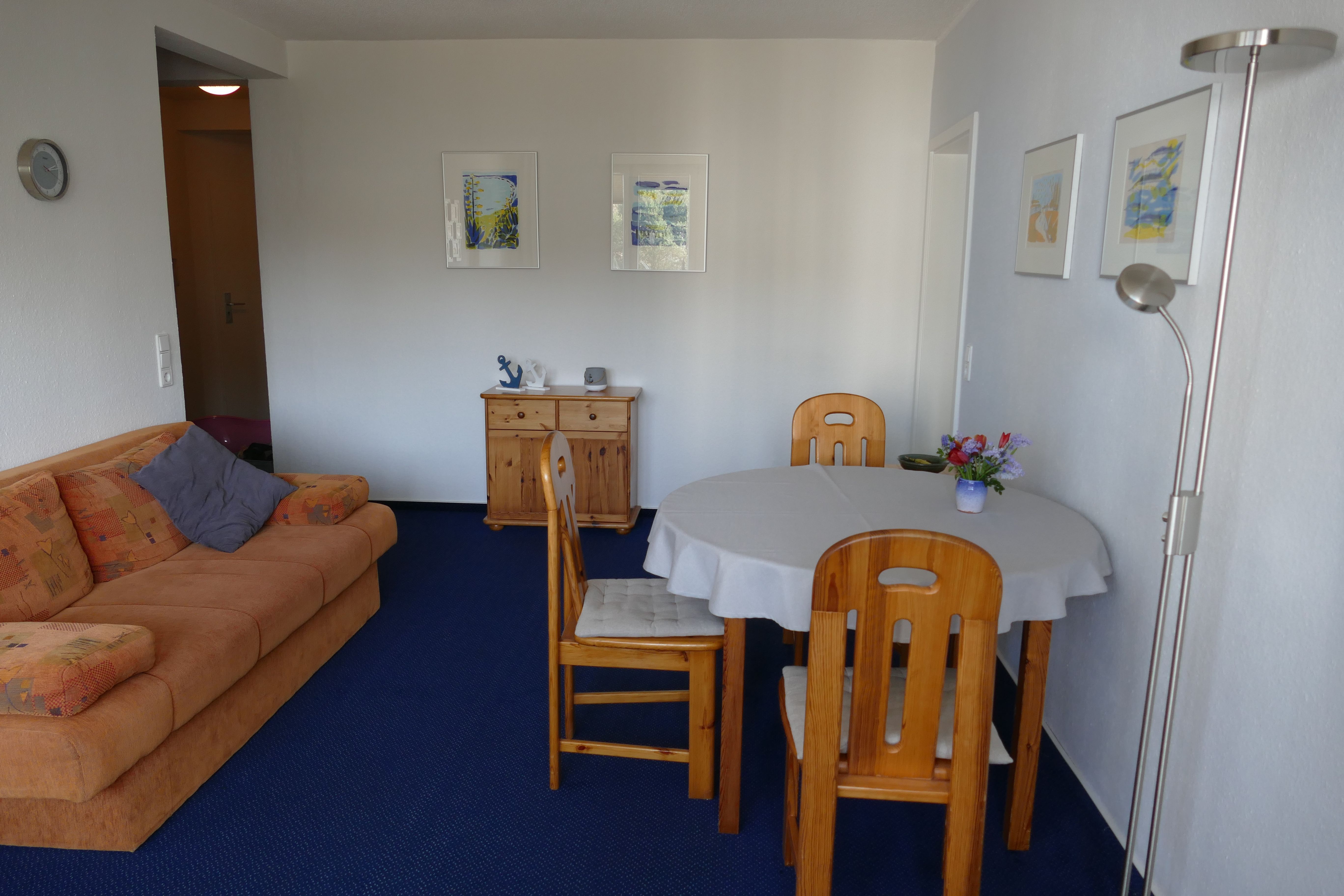 Sie ist komfortabel und geschmackvoll eingerichtet. Im großen und freundlichen Wohnzimmer befinden sich ein Essplatz, eine Doppelbettcouch sowie ein Fernseher mit Kabelanschluss. Das Schlafzimmer verfügt über einen geräumigen Kleiderschrank und 2 Betten. Bei Bedarf kann ein zusätzliches Kinderbett aufgestellt werden. Die Küche ist mit Herd, Kühlschrank, Spülmaschine, Kaffeemaschine, Toaster und Mikrowelle vollständig eingerichtet.