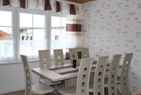 Ferienwohnung in ruhiger Lage am Ortsrand mit 110 m² Wohnfläche im Erdgeschoß für 4 bis max. 8 Personen und 2 PKW Stellplätze,
