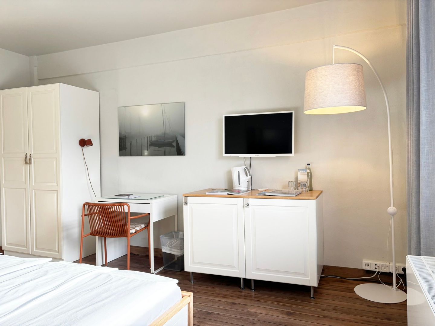 Willkommen im 1-Zimmer-Appartement Pier 9, einem modernen Doppelbett-Zimmer im denkmalgeschützten Ambiente des ehemaligen Getreidespeichers am Kappelner Hafen. Auf 25qm erwartet Sie ein maritimes Design, mit Blick auf Schlei und die Schleibrücke.