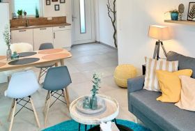 • Weitere Schlafmöglichkeit im Wohnzimmer auf dem Sofa für 1 Person (oder 2 Kinder)