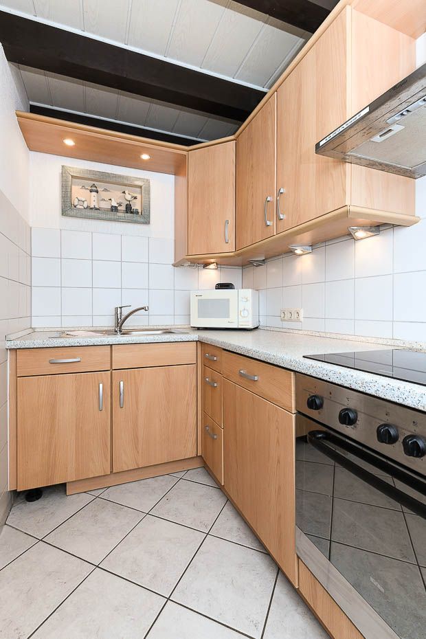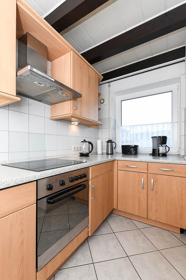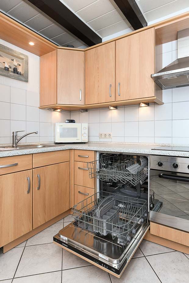 Moderne Küche mit Geschirrspülmaschine, Ceran-Kochfeld und Umluft-Backofen