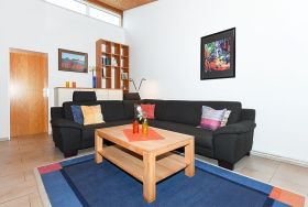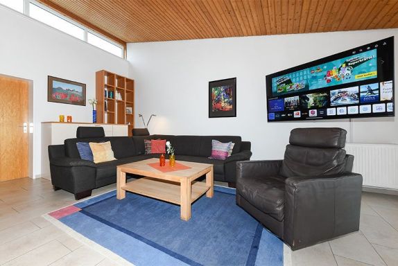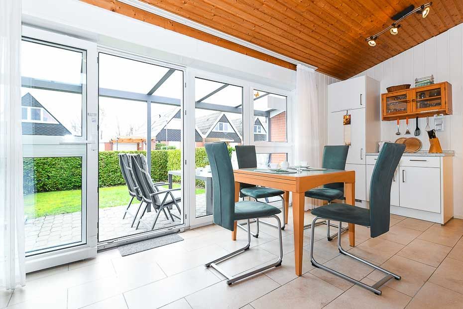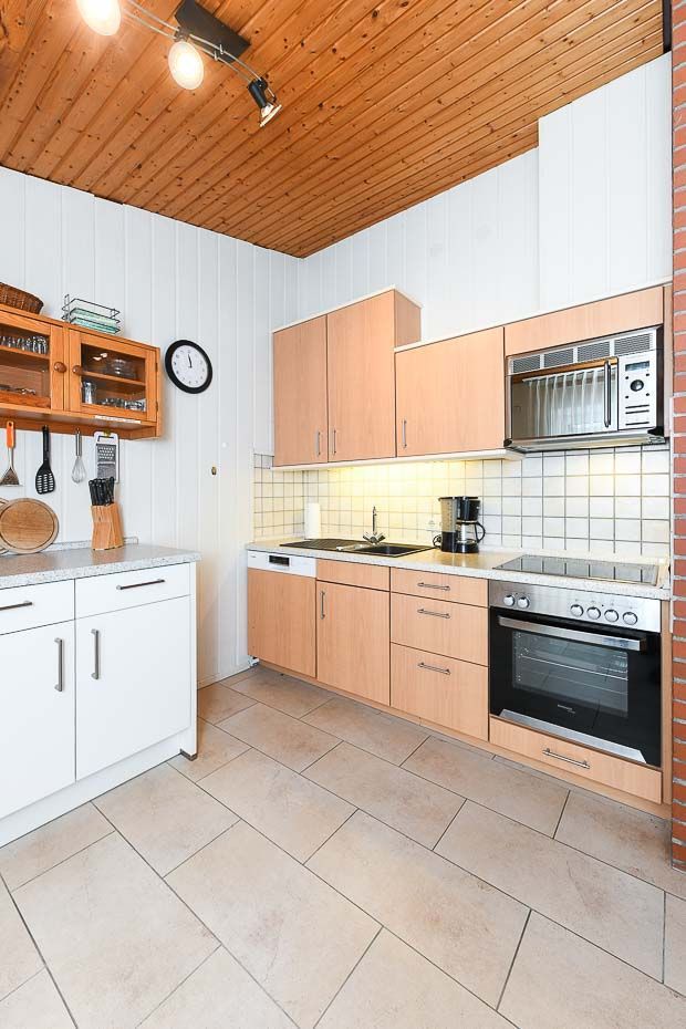 Das Ferienhaus Kerstin ist hell und freundlich gestaltet, komfortabel und modern-gemütlich eingerichtet sowie sehr gut ausgestattet. Es verfügt zum Beispiel über eine Küche mit Geschirrspülmaschine und Mikrowelle, ein modernes Boxspringbett im Elternschlafzimmer, einen Hauswirtschaftsraum mit Waschmaschine sowie über eine große geschützte Terrasse am Wohnzimmer mit direktem Gartenzugang.