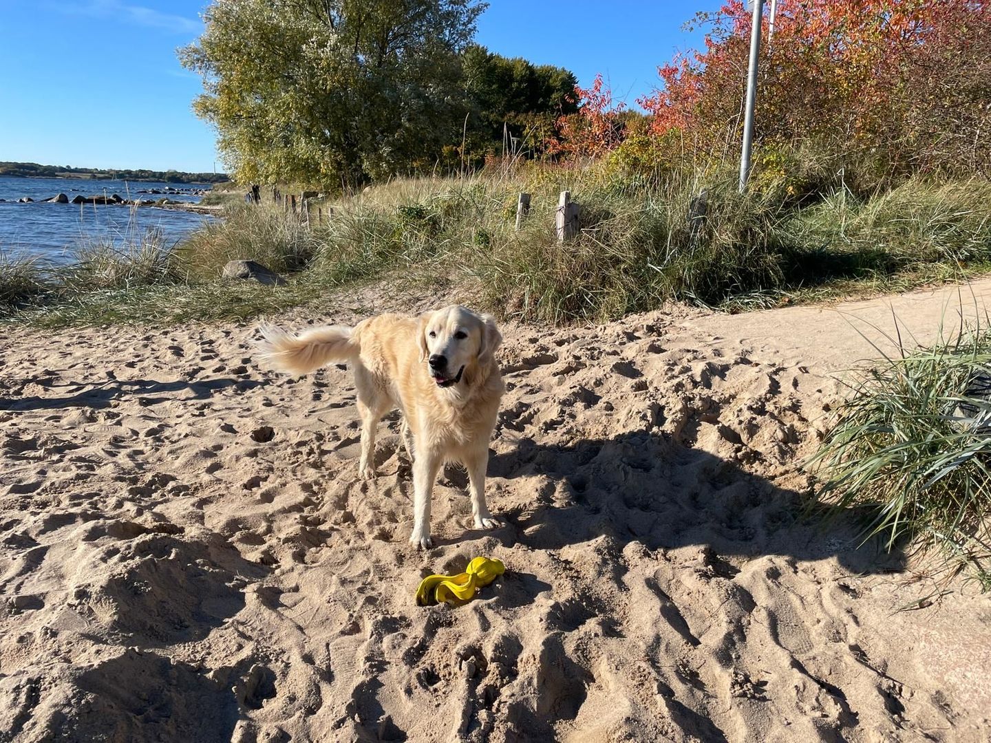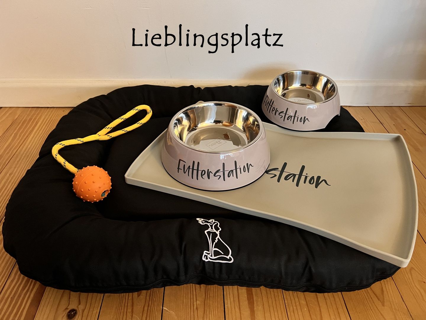 Auf Ihren Hund wartet hier ein Hundekörbchen Gr. M, Fress- und Wassernapf... der Hundestrand ist nur ca. 200 m entfernt.