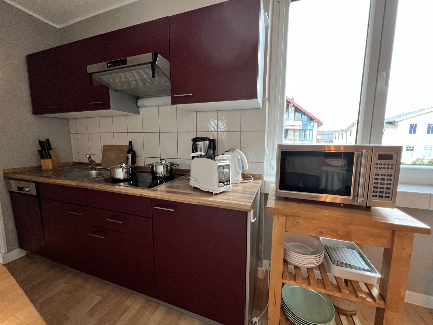 - voll ausgestattete Küche mit Geschirrspüler, Kühlschrank mit Gefrierfach, Herd mit Ceranfeld und einer Mikrowelle mit Grill-, Backofenfunktion