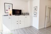Die moderne Einbauküche ist voll ausgestattet mit Cerankochfeld, Backofen, Mikrowelle, Kühlschrank mit Gefrierfach, Geschirrspüler sowie allen wichtigen Küchenutensilien.