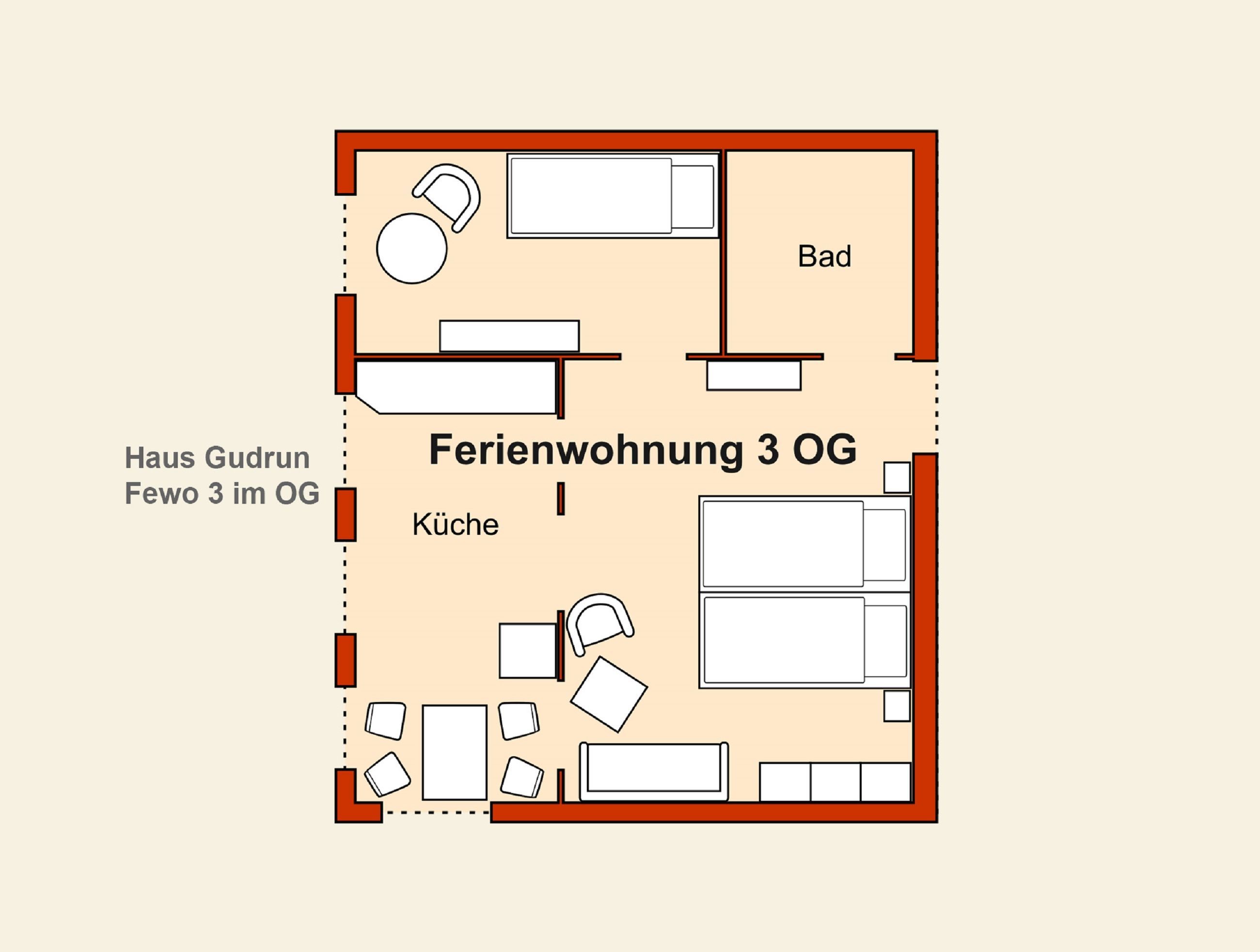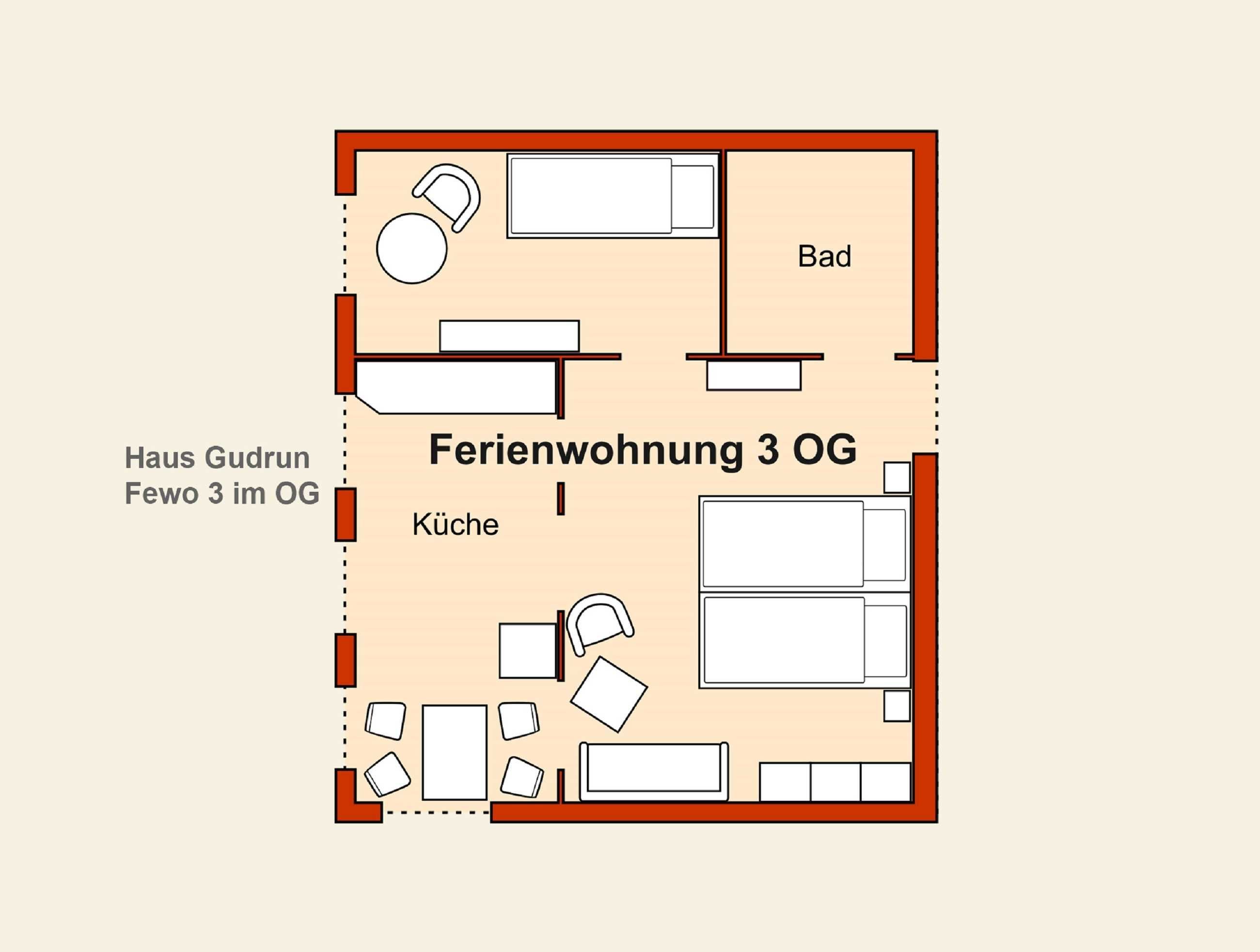 Die Ferienwohnung 3 befindet sich im Haus Gudrun, einer historischen Villa aus dem Jahr 1898, die im Zuge der Modernisierung mit viel Sorgfalt in eine Wohlfühloase verwandelt wurde.