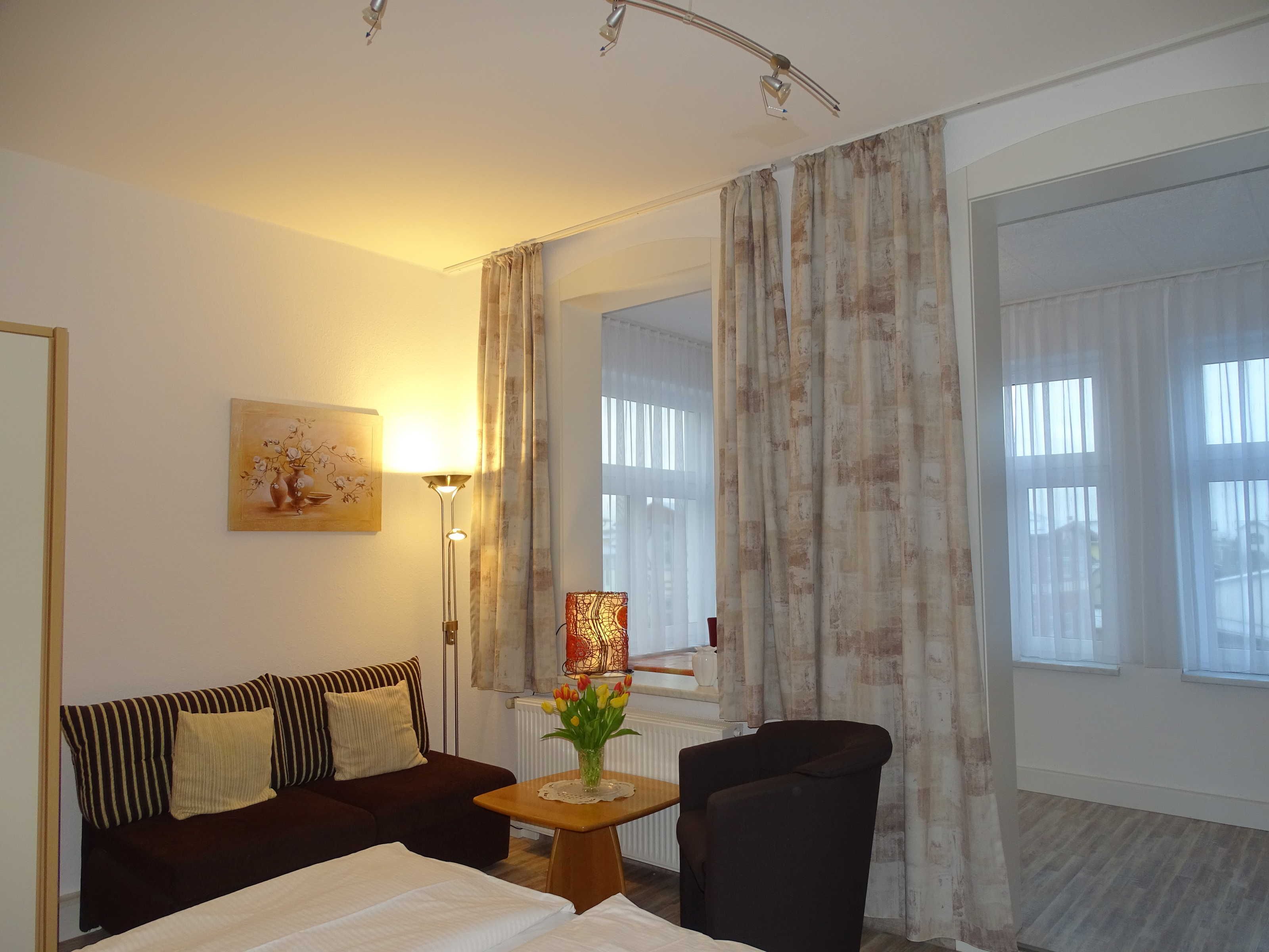 In der ersten Etage der Stranddistel Haus Gudrun erwartet Sie dieses schöne Appartement für zwei bis drei Personen. Zusätzlich zum kombinierten Wohn-Schlafbereich mit einem Doppelbett, Sofa und Sessel verfügt es über ein separates Schlafzimmer mit einem Einzelbett für einen dritten Gast. Der gemütliche Küchenbereich in der lichtdurchfluteten Veranda lädt dazu ein, den herrlichen Blick auf die Umgebung zu genießen. Ein perfekter Rückzugsort für einen entspannten Aufenthalt in angenehmem Ambiente.