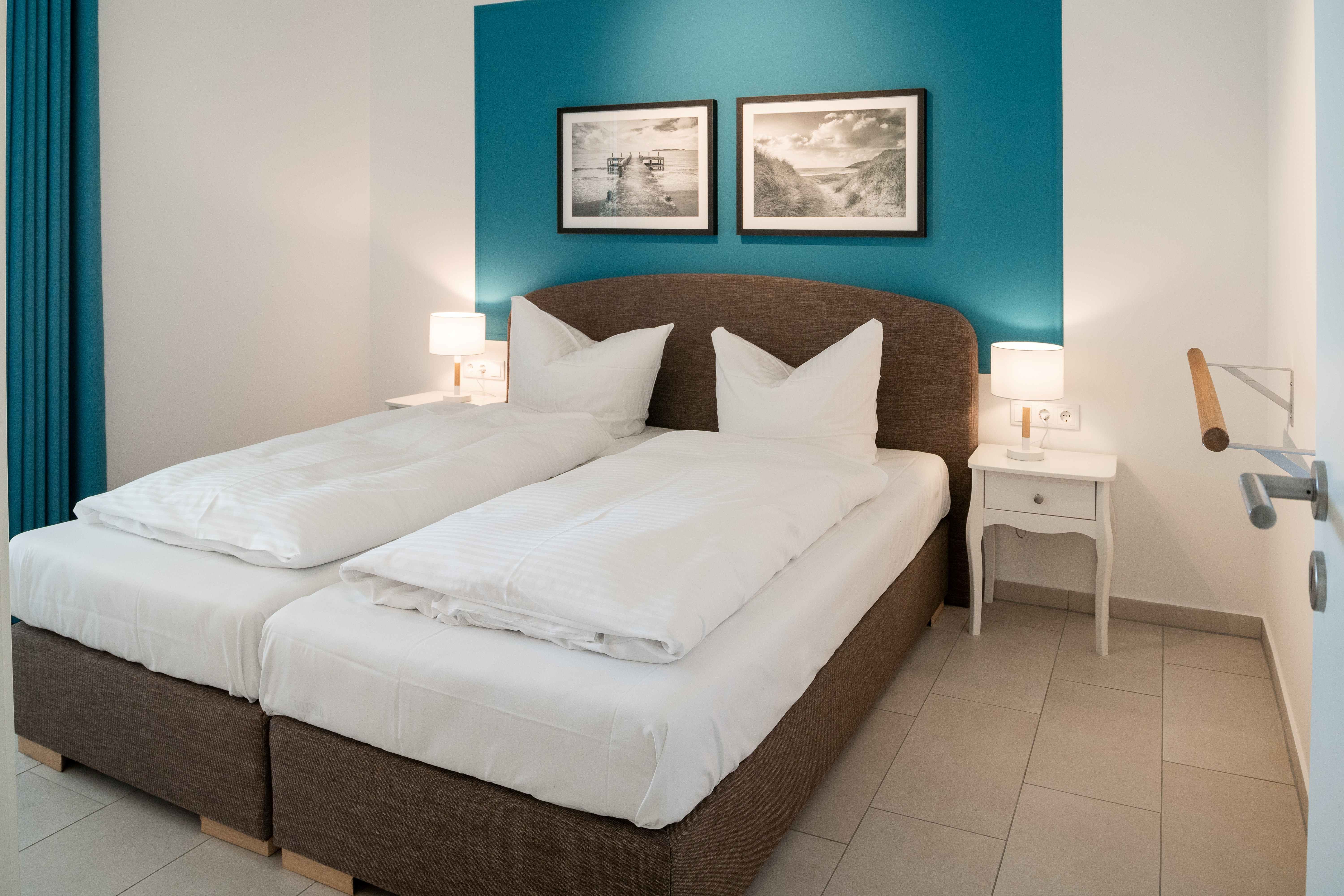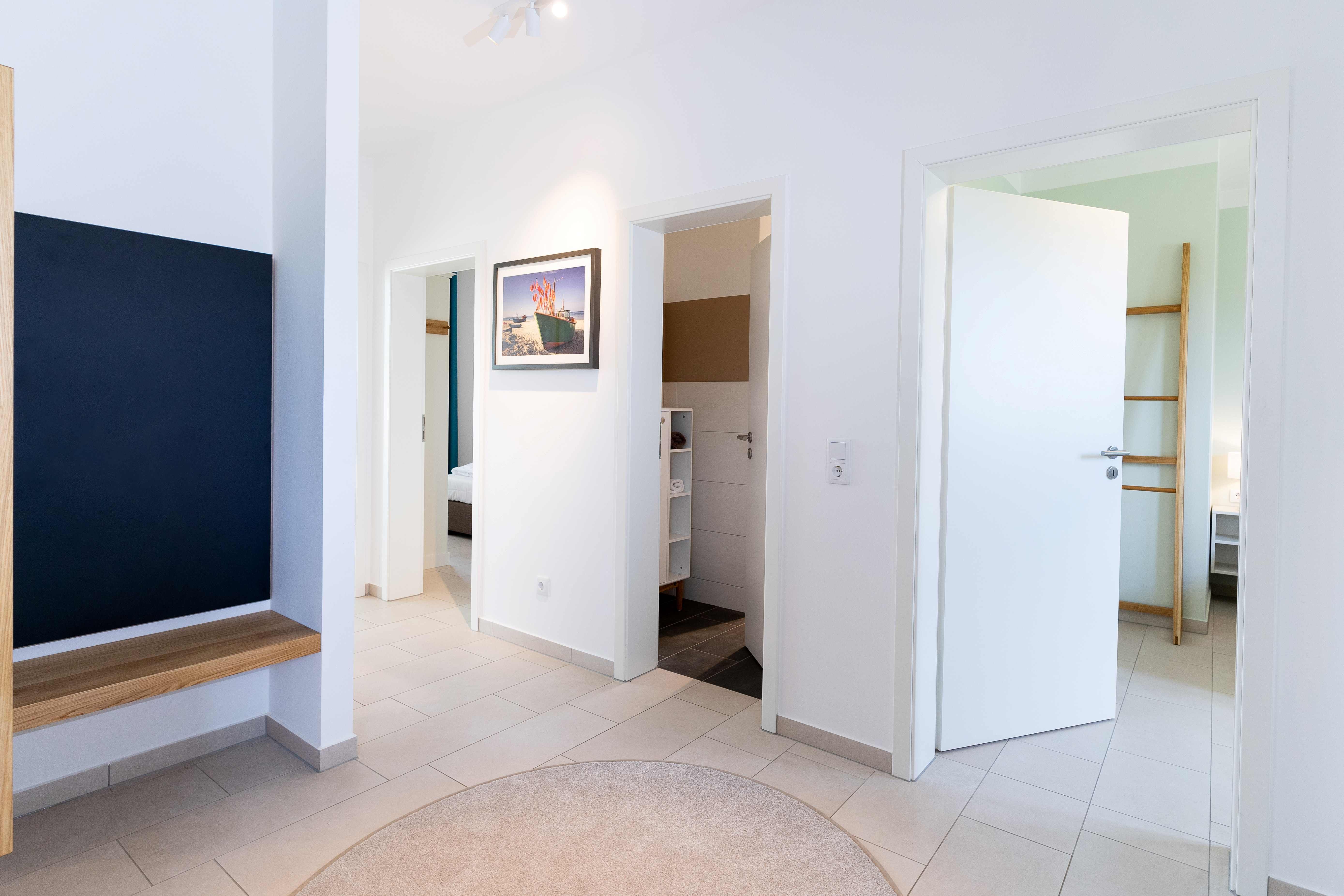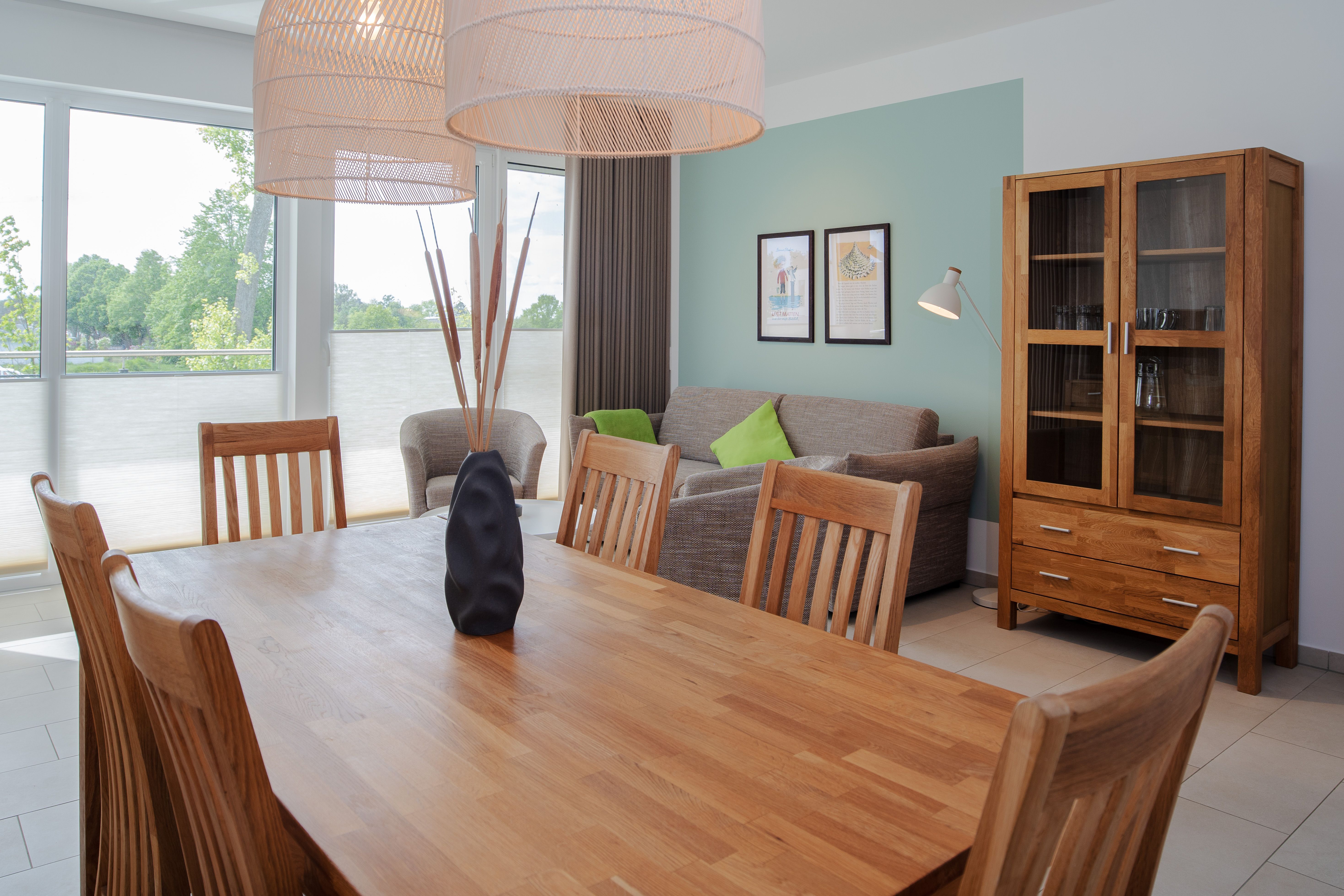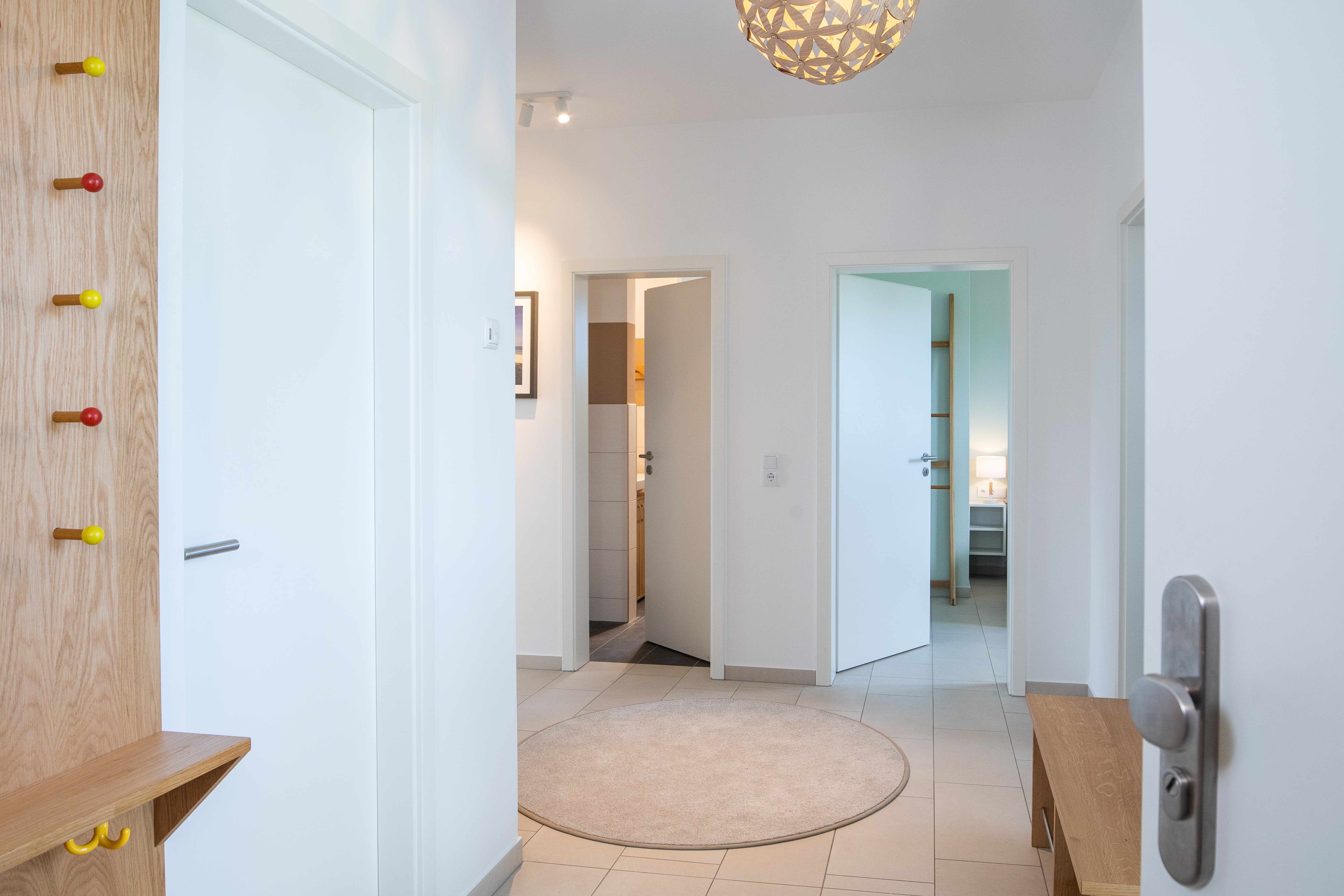 Unsere Ferienwohnung ist großzügig geschnitten und für bis zu 6 Personen geeignet, 1. OG, 90 qm, 2 Schlafzimmer zzgl. Schlafcoach im Wohnzimmer, 2 Balkone, 2 Bäder, Küche