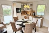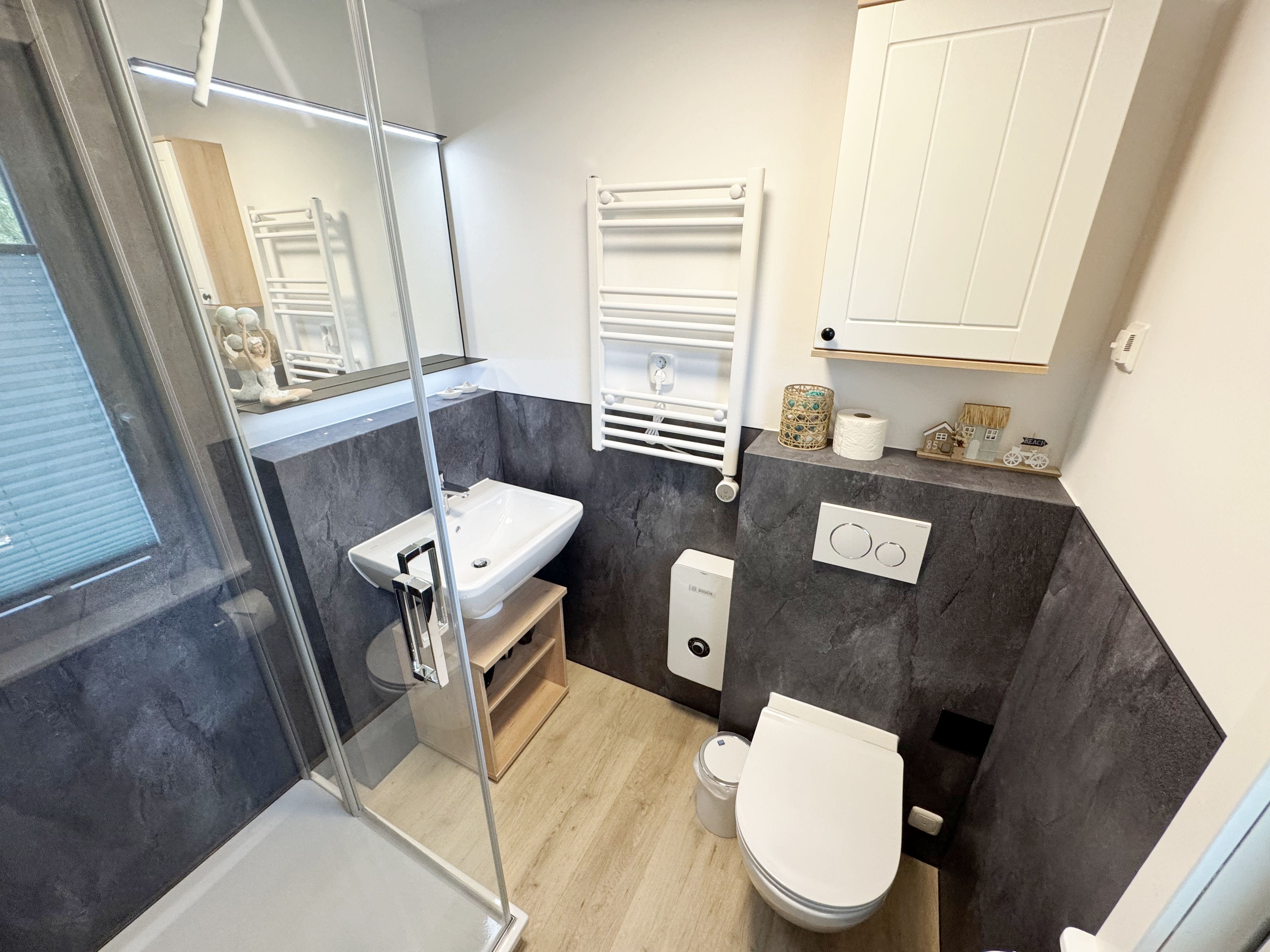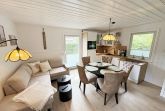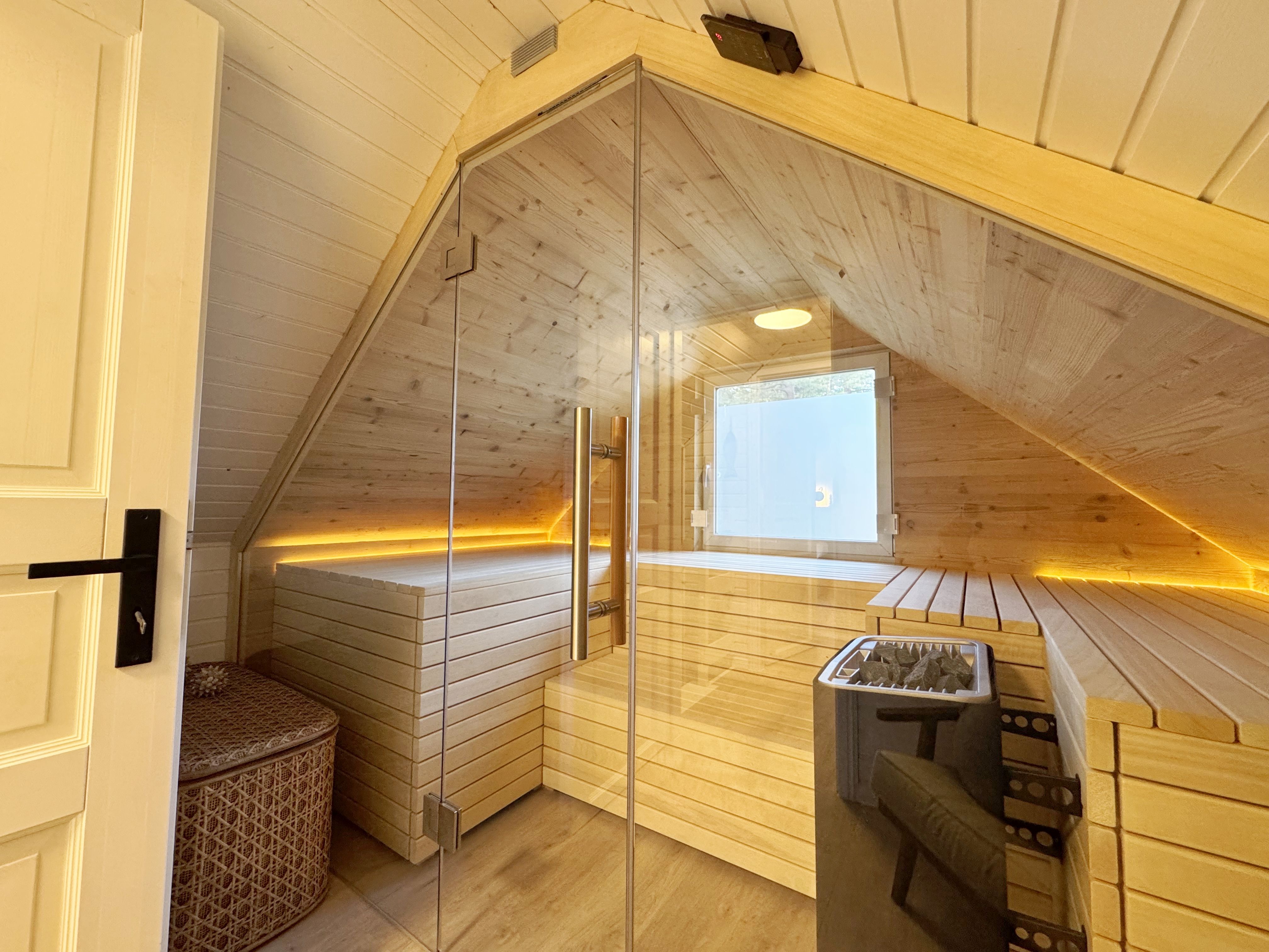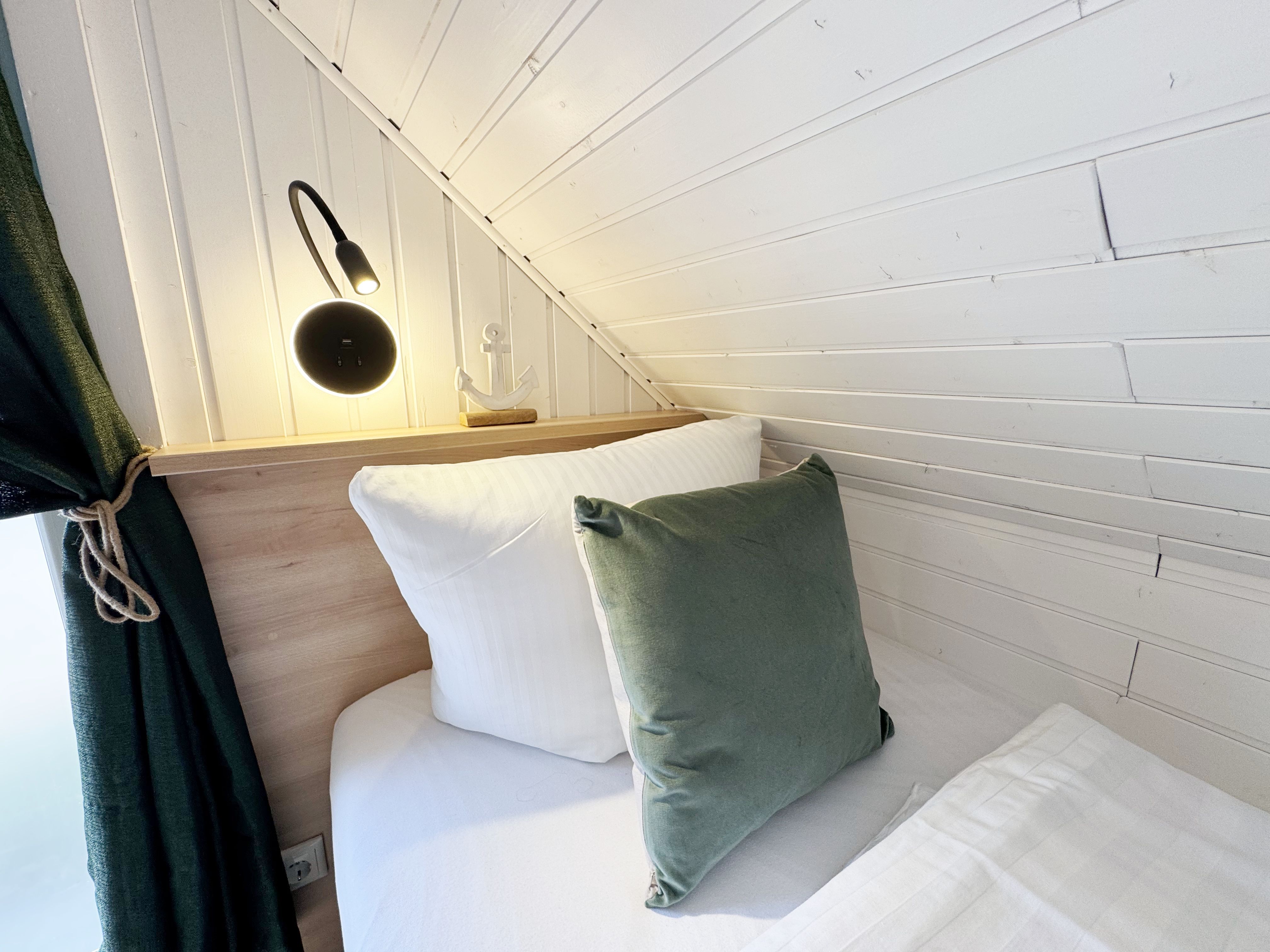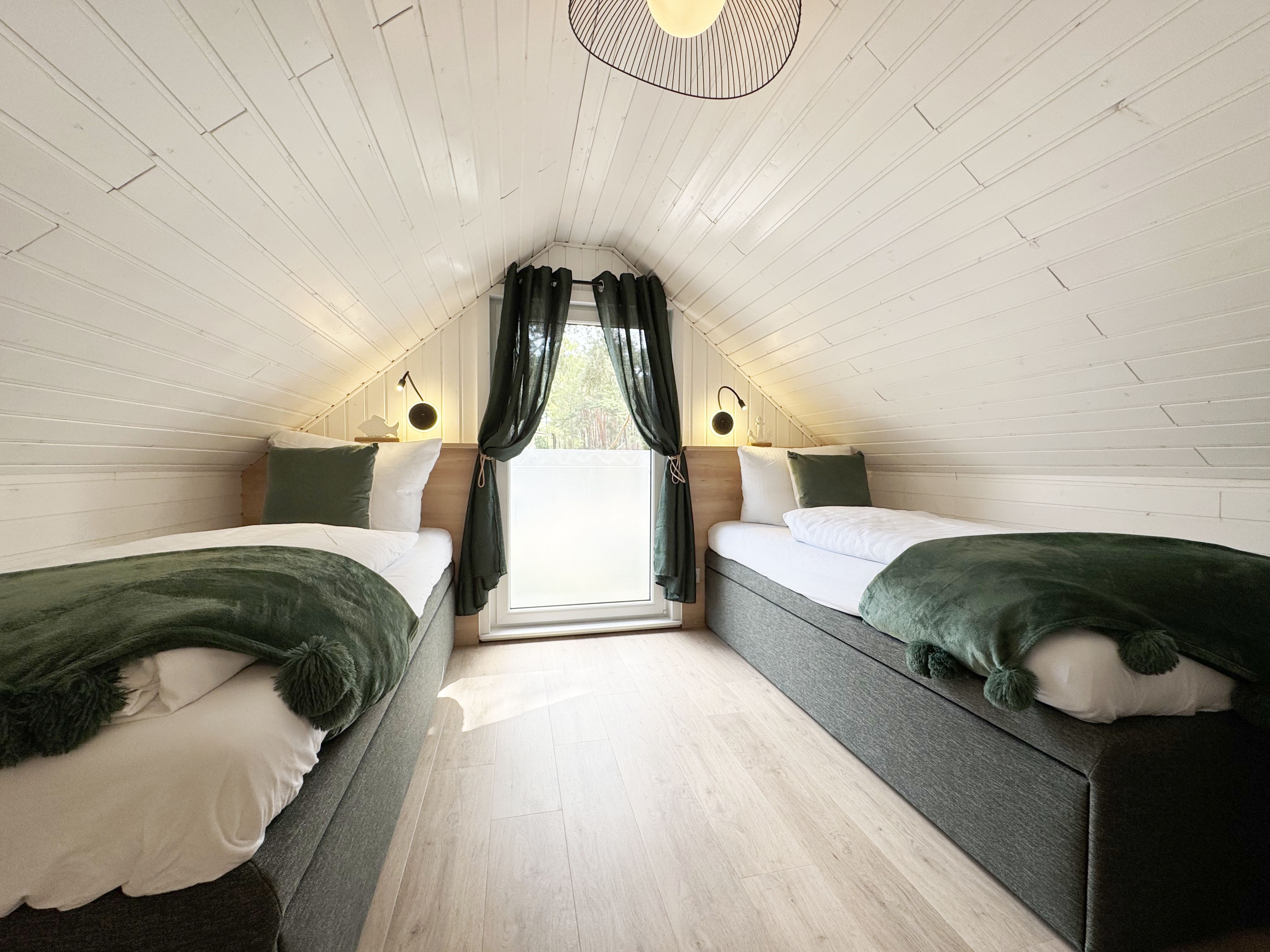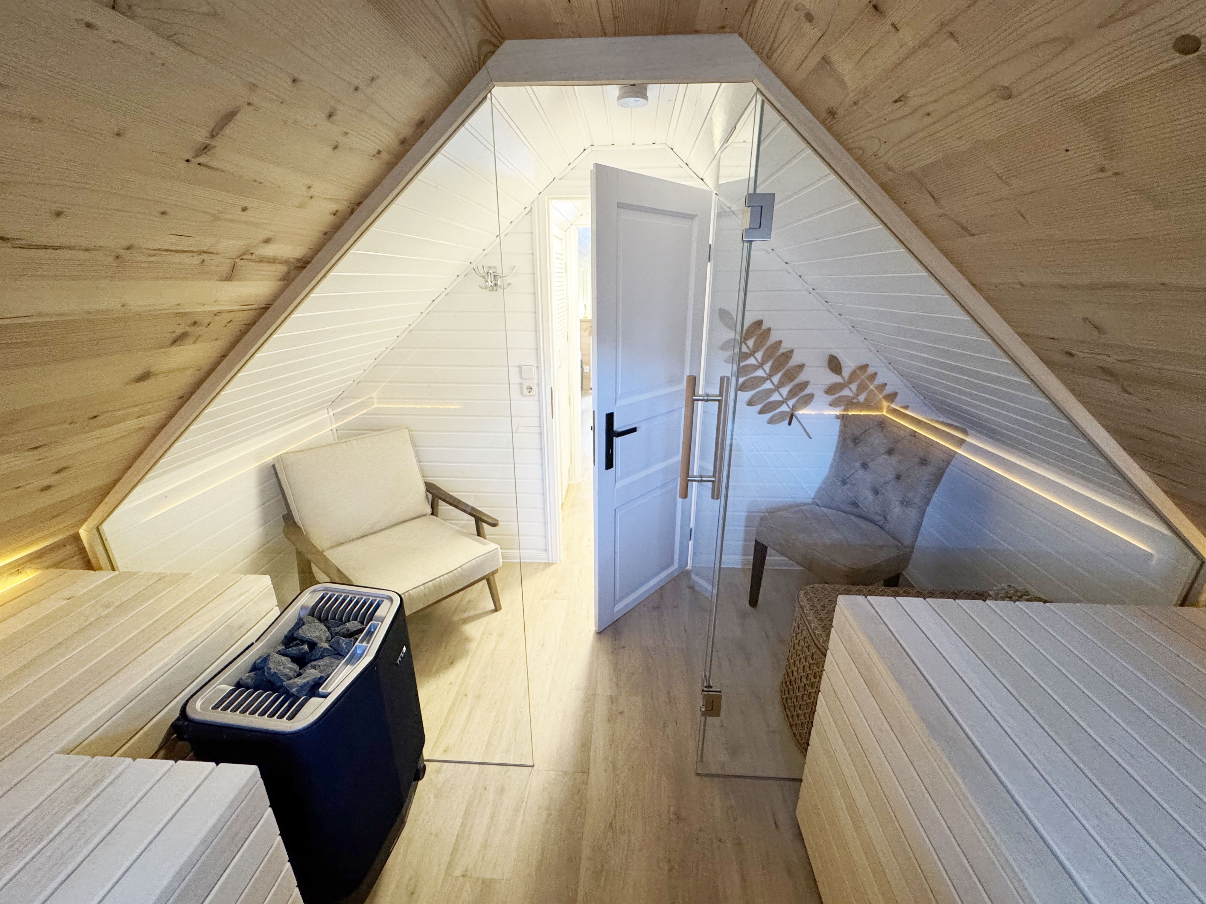 Das gemütliche 2005 in holzbauweise errichtete und 2025 renovierte Ferienhaus Strandmelodie (Nr.08c) mit einer Wohnfläche von 59 m² finden sie im Dünenpark Baabe, umgeben von Meer und Wald. Das optimal für 2 bis 4 Erwachsene + 1 Kleinkind bis 3 Jahre im Kinderreisebett ausgerichtete tierfreundliche Nichtraucherhaus betreten sie über einen kleinen Eingangsflur mit Garderobe. Im Erdgeschoß befindet sich der Wohn- und Essbereich mit gemütlicher Wohnlandschaft mit Urlaubslektüre, Stehlampe, Smart-TV, DAB-Radio mit Bluetooth und auch für einen Internetzugang ist gesorgt. Dieser ist für sie inklusive. Wer es abends noch etwas gemütlicher mag, der zündet sich den Kamin an und lässt den Tag bei einem prasselnden Feuer und einem Glas Wein ausklingen. Dem Wohnbereich angeschlossen ist die Einbauküche mit Geschirrspüler, Kühlschrank mit Gefrierfach, Ceranfeld, Backofen, Mikrowelle, Kaffeemaschine, Eierkocher, Wasserkocher und Waschmaschine mit Trocknerfunktion. Am Esstisch finden alle Personen Platz, wo auch für ein Hochstuhl gesorgt ist. Direkt vom Wohn-& Essbereich haben sie die Möglichkeit die Terrasse zu betreten, welche mit bequemen Terrassenmöbeln, einem Steingrill, einer Überdachung und Sonnenschutz ausgestattet ist. Das freundlich eingerichtete Schlafzimmer ist mit einem Boxspringbett (1,60m x 2,00m) mit verstellbaren Lattenrosten, Nachttischkonsole, Leseleuchten, Kleiderablage, einem Safe, einem Smart-TV, Verdunklungsmöglichkeiten und Kleiderschrank ausgestattet. Auf gleicher Ebene befindet sich das Tageslicht-Bad mit ebenerdiger Dusche, Waschplatz, Fön, Kosmetikspiegel, Insektenschutzgitter und WC. Über eine Holztreppe erreichen sie das Obergeschoß zum 2. Schlafzimmer mit 2 Einzelboxspringbetten (je 0,90m 2,00m), Ablagemöglichkeiten, Leseleuchten, Verdunklungsmöglichkeit, einem kleinen Sitzbereich und einer Kommode zur Kleiderablage. Im Vorflur befindet sich zusätzlich ein Einbauschrank, wo Sie Ihre Kleidung zudem auch aufhängen können. Unsere bis zu 100° beheizbare Trockensauna befindet im angrenzenden Nebenraum mit Blick ins Grüne.Im kleinen Vorraum befindet sich eine Sitzgelegenheit zum entspannen. Das Haus verfügt in allen Räumen über eine Fußbodenheizung und in den Schlafräumen, Wohn-& Essbereich befinden sich vor den Fenstern Insektenschutzgitter, die Ihnen einen ruhigen Schlaf ermöglichen. Ihre geliehenen oder mitgebrachten Fahrräder/E-Bikes können sie in dem am Haus befindlichen Fahrradschuppen mit Auflademöglichkeit sicher unterbringen. Ein Haustier ist mit seinem eigenen Schlafplatz gegen eine Gebühr ein gern gesehener Gast. Ihr PKW-Stellplatz (Nr.08c) befindet sich in unmittelbarer Nähe und in Sichtweite. Die Erstausstattung eines Wäschepaketes (komplette Bettwäsche, 1 Duschhandtuch, 2 kleine Handtücher) können Sie bis 14 Tage vor Anreise gegen einen Aufpreis dazu buchen oder durch eigenes Ergänzen. Ab 2 gebuchten Paketen erhalten Sie einmalig 1 Geschirrhandtuch und 1 Duschvorleger hinzu.