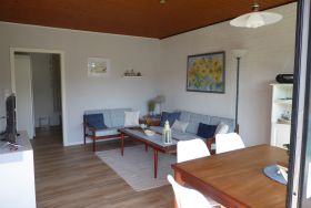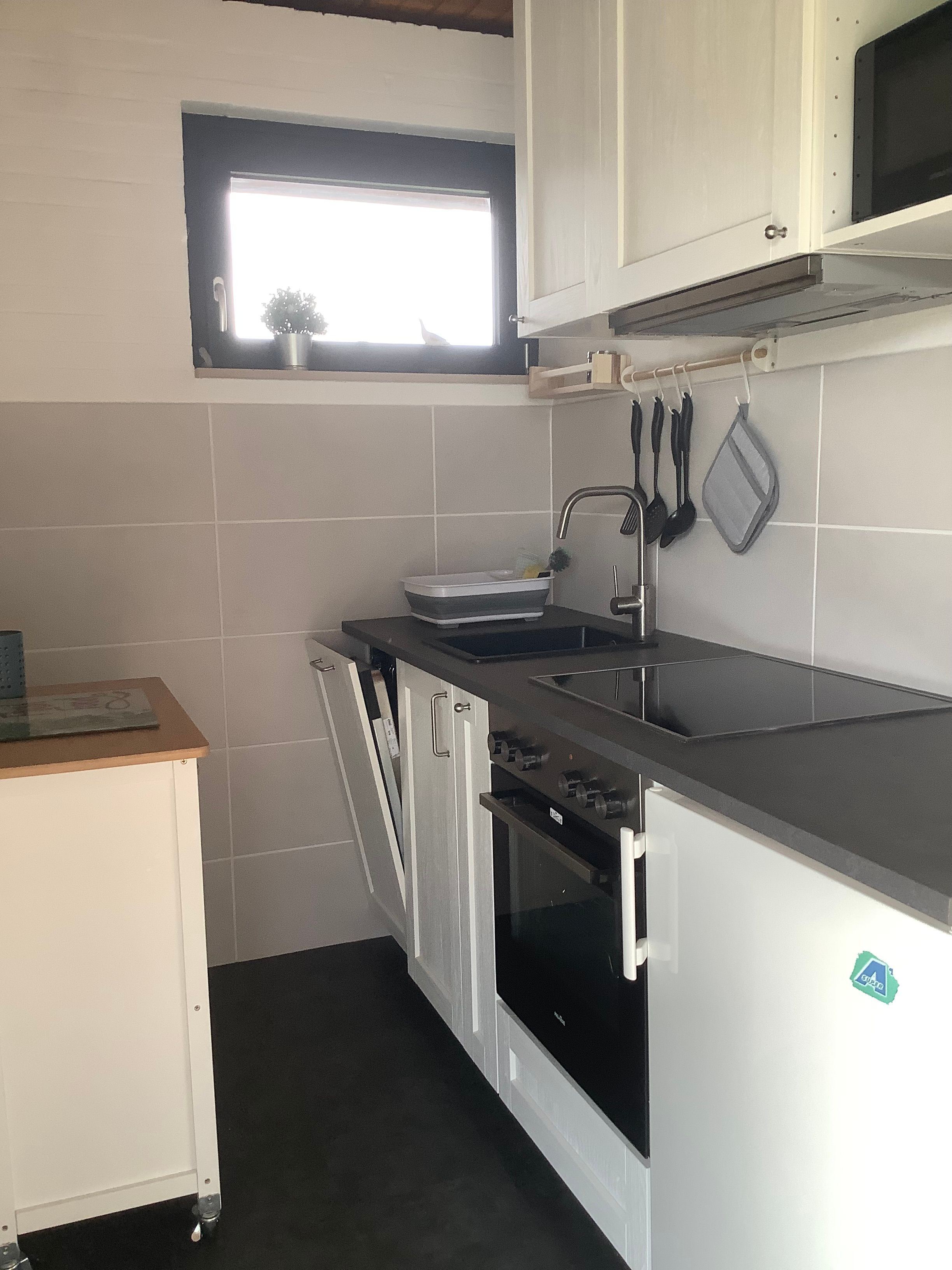 Neben einer gut eingerichteten Küche mit Geschirrspüler, E-Herd, Mikrowelle Kaffeemaschine, Wasserkocher und Toaster, erwartet Sie zusätzlich ein Flachbildfernseher im Wohnbereich, Radio mit MP3-Spieler, zwei Sofas und eine Waschmaschine. Im Wohnzimmer ist 2025 ein Pelletofen angeschlossen worden. Damit kann wie mit einem Kaminofen eine gemütliche Wärme erzeugt werden.