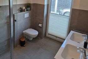 • 1 großes Badezimmer mit bodengleicher Dusche