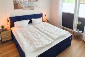 • Schlafzimmer 2: Doppelbett 180x200 cm (Boxspring) + schmales Schlafsofa (für 1 Person)