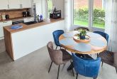 Unser nagelneues Ferienhaus STRANDHÜSKEN liegt unmittelbar hinterm Deich und ruhig gelegen im Feriendorf Jade-Sehestedt.