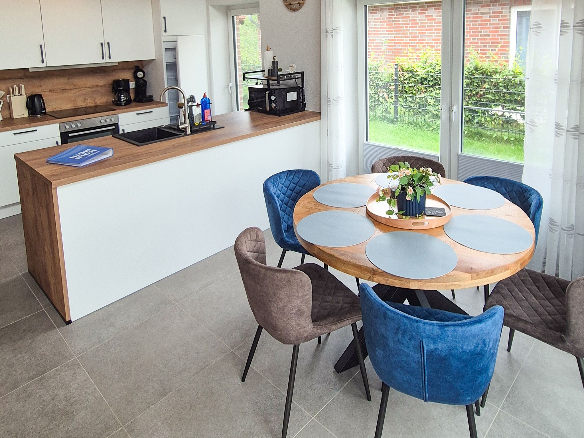 Unser neues Ferienhaus liegt unmittelbar hinterm Deich an der Nordsee und bietet bis zu 8 Personen (maximal 6 Erwachsene) ausreichend Platz.