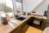 Der offene Wohnbereich verfügt über eine moderne, voll ausgestattete Küche mit integriertem Essbereich.