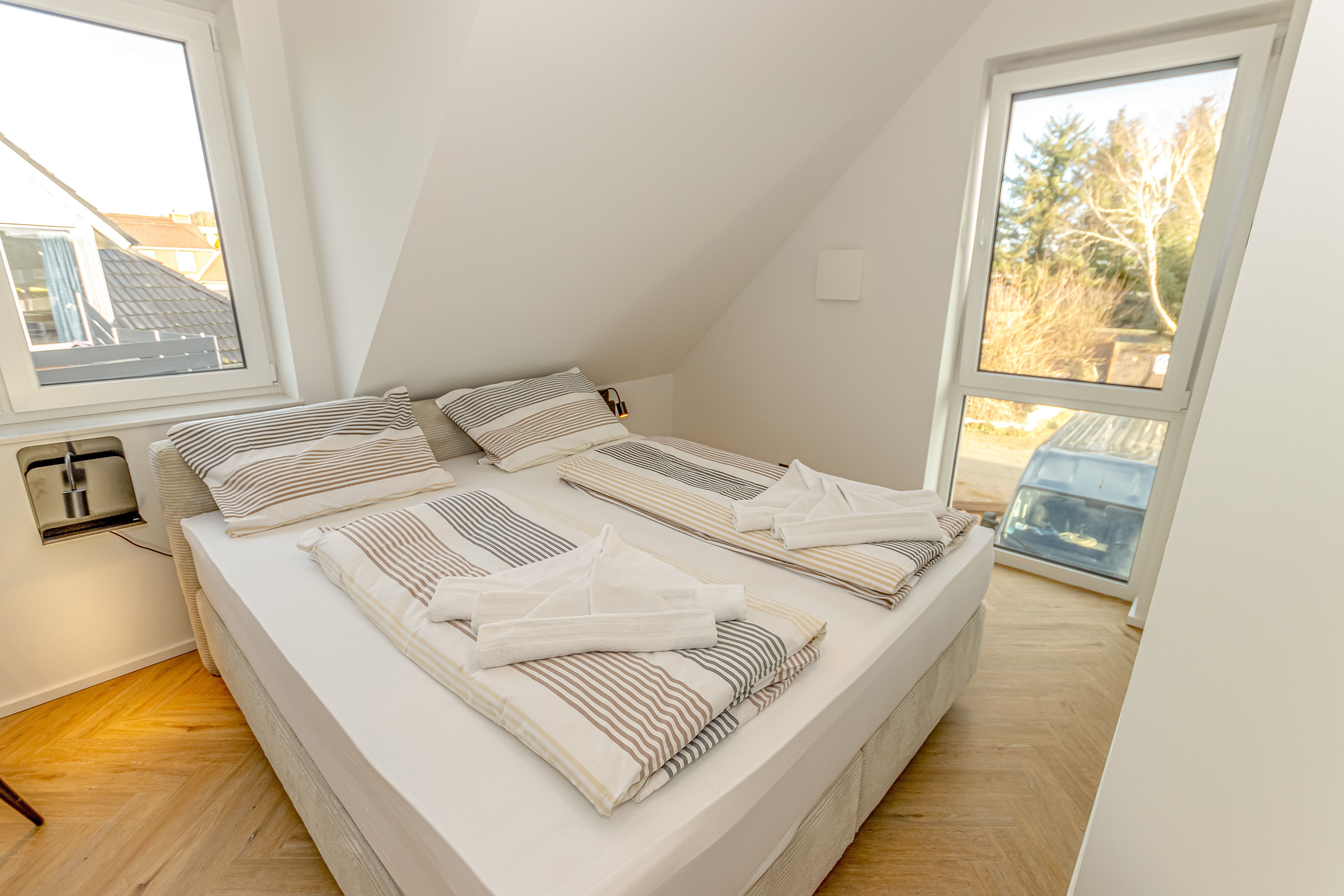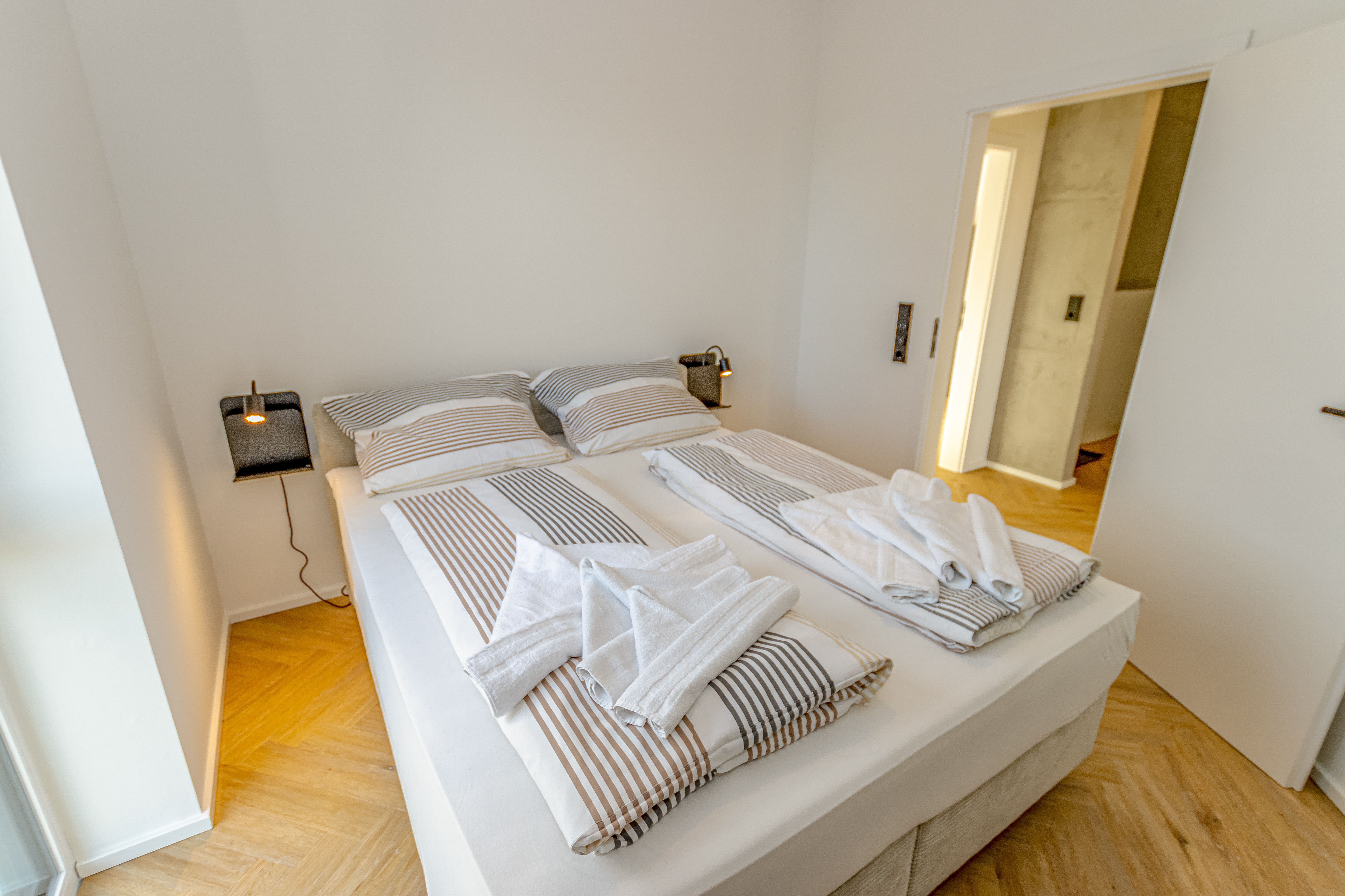 Zwei gemütliche Schlafzimmer, jeweils mit komfortablem Doppelbett.