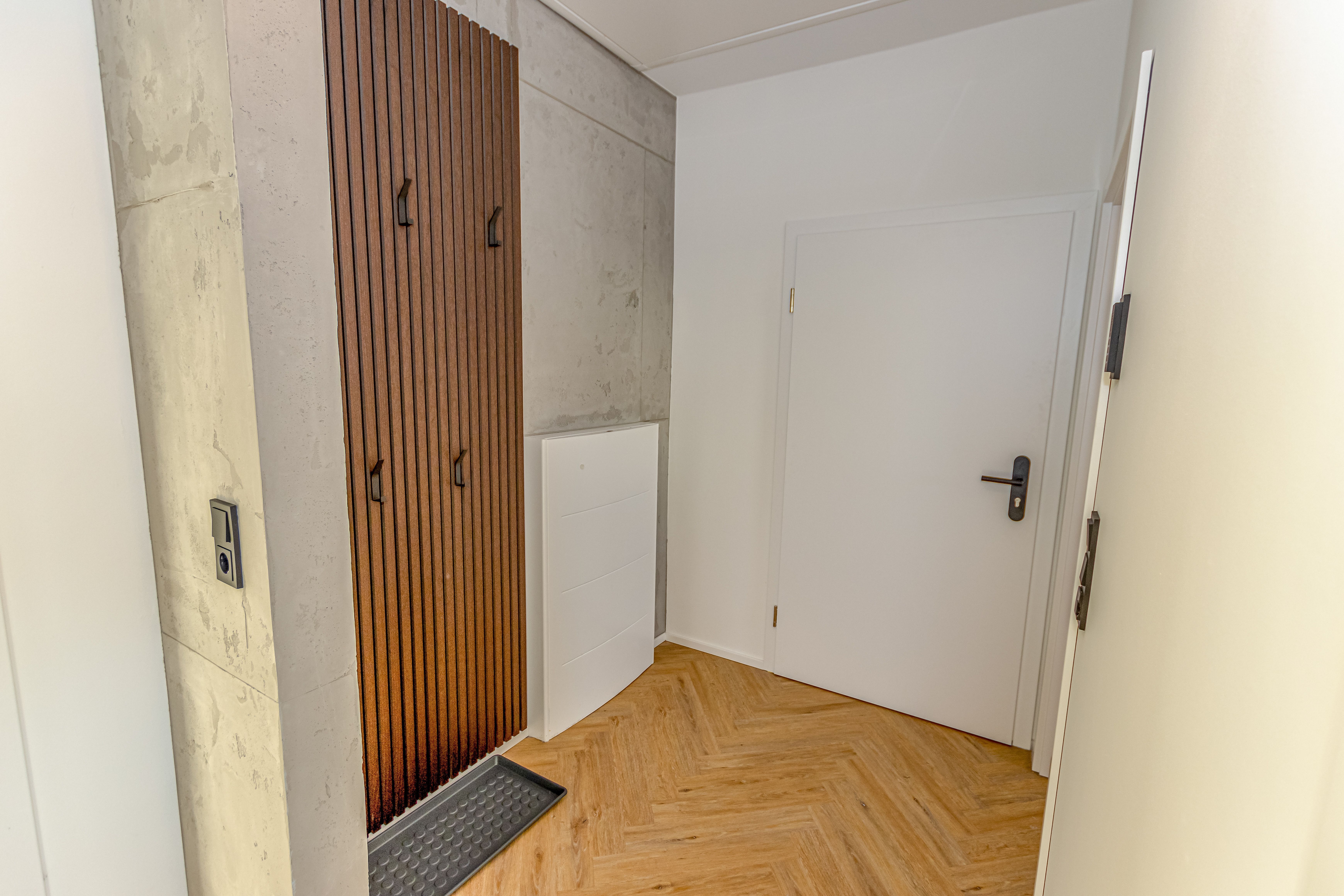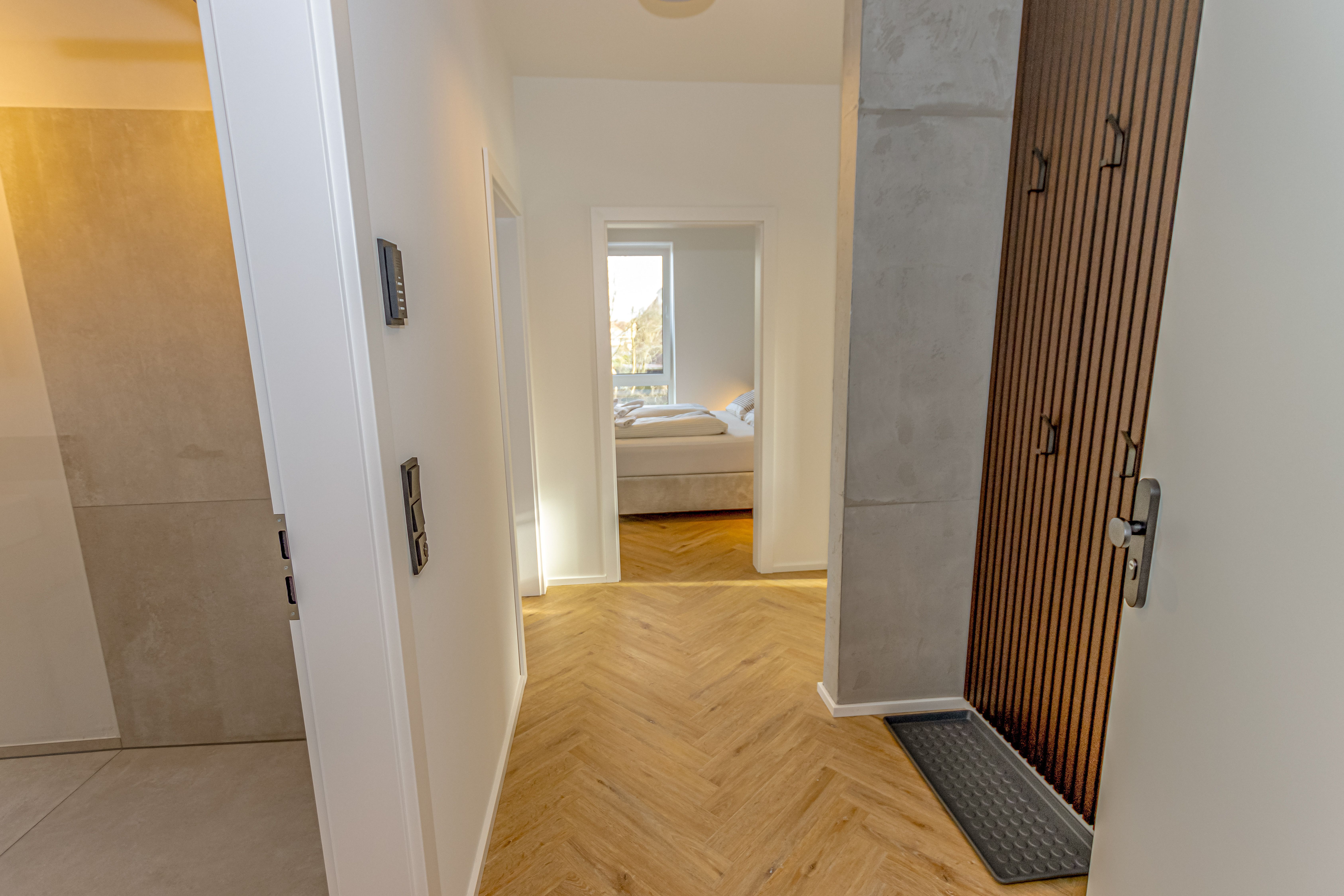 Die Fußbodenheizung in der gesamte Wohnung sorgt für angenehme Wärme. Elektrische Rollos ermöglichen eine komfortable Verdunkelung der Räume.