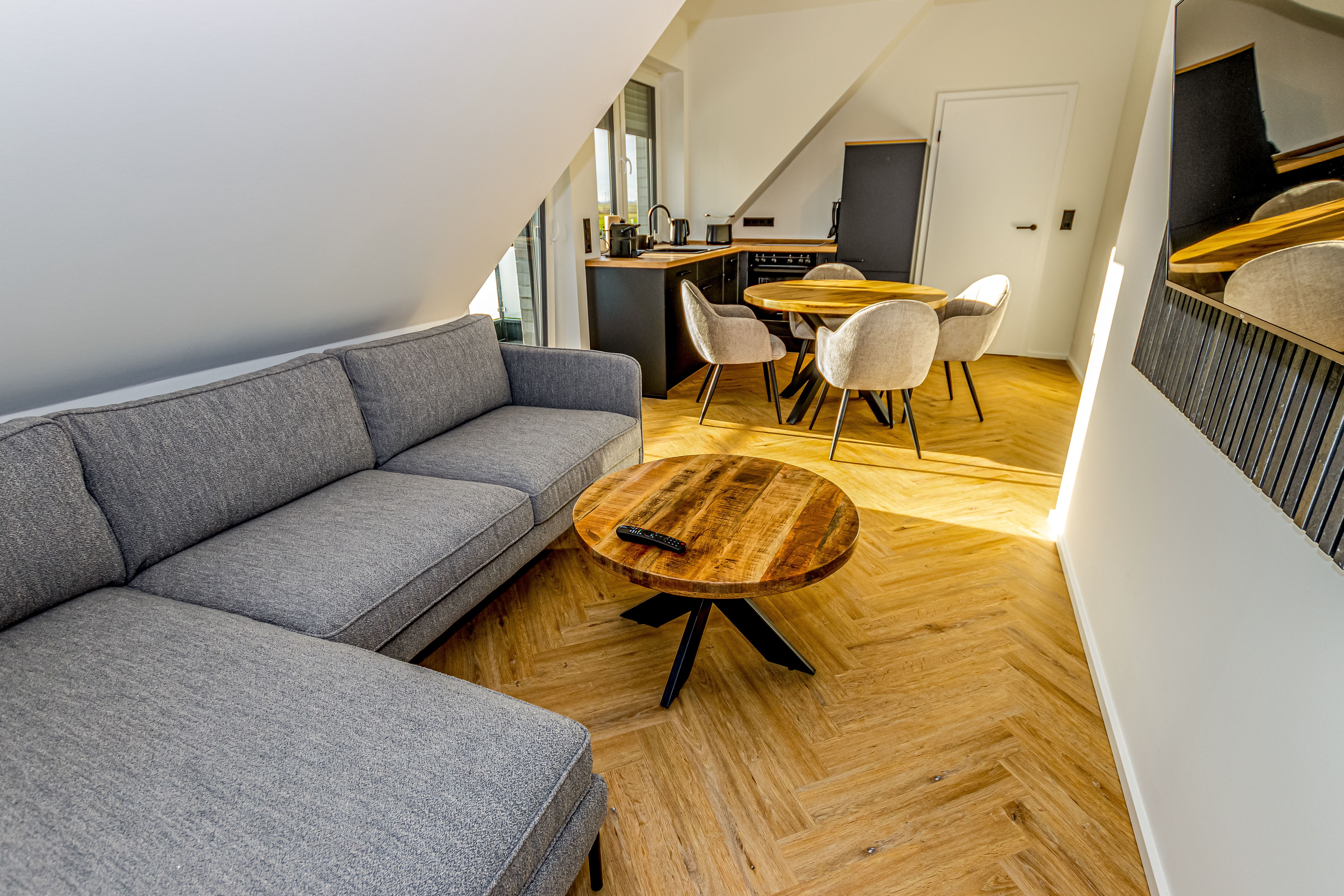 Die Ferienwohnung Benser Loft (ehemals Friesenloft 3), befindet sich im ersten Obergeschoss und bietet eine moderne Ausstattung für höchsten Komfort: