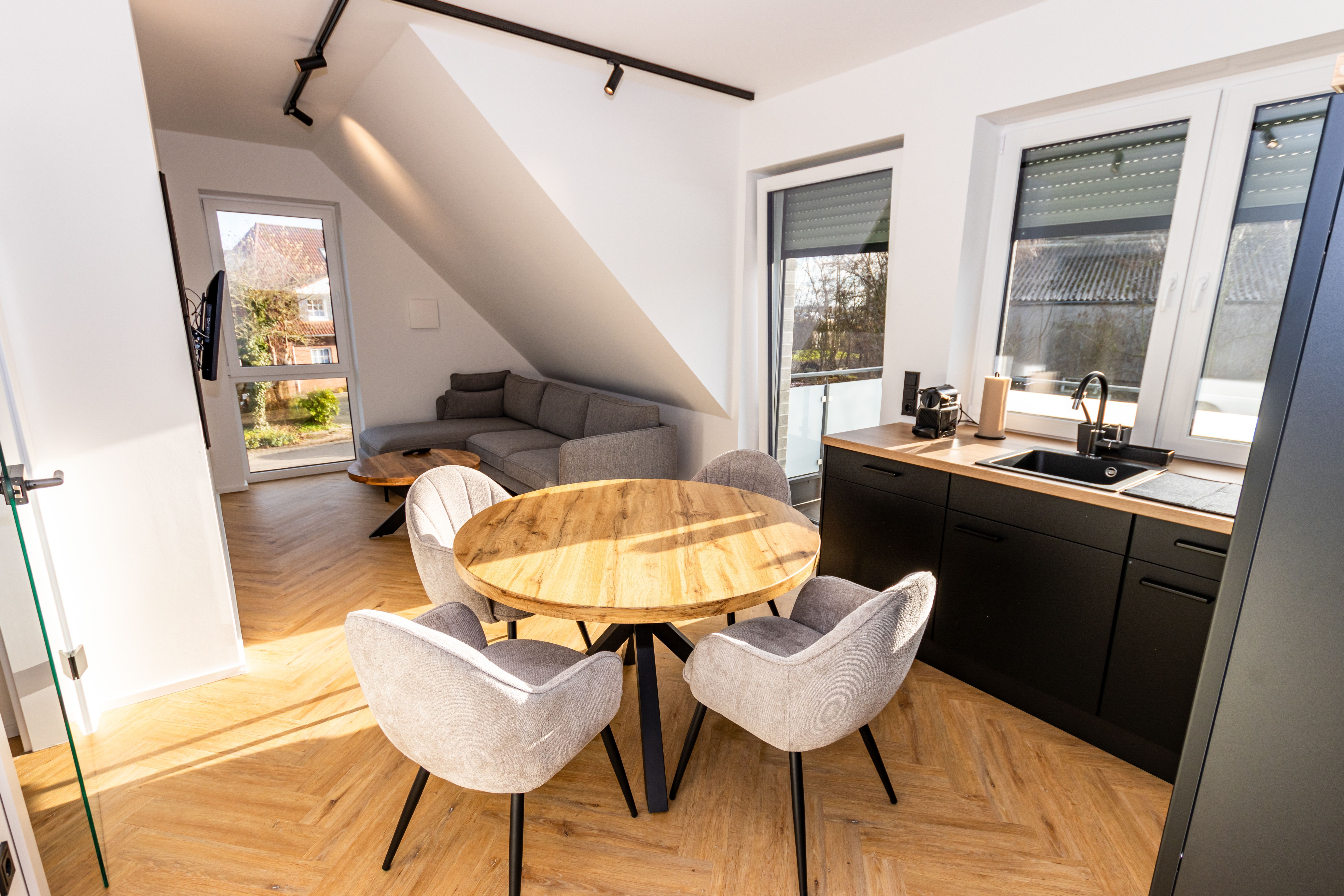 - Wohnraum mit integrierter Küche und Essgruppe