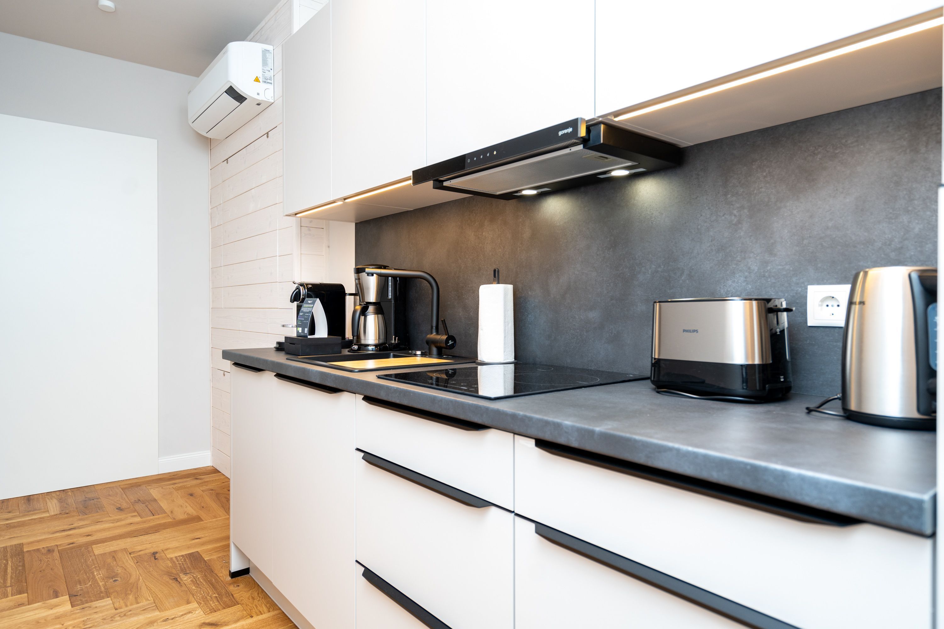Die 2024 fertig gestellte Strandterrasse liegt direkt an der belebten Strandpromenade und bietet einen einzigartigen Ausblick auf die Grand Dame der historischen Seebrücken sowie die historische Konzertmuschel, einem beliebten Treffpunkt für Kunst und Kultur. Dahinter liegt die Ostsee ein Panorama, das zu den schönsten in den Kaiserbädern gehört. Es ist wie das Abtauchen in eine andere Zeit. In eine Zeit, in der man mit Stock, Sonnenschirm und Hut fürs Sehen und gesehen werden über die Promenade schlenderte; aber auch in eine Zeit, in der damals wie heute Zeit einmal für eine kurze Weile keine Rolle spielt. Weil man angekommen ist im Loslassen, Entspannen und Genießen. Es ist dieser besondere Geruch nach Meeresluft und Freiheit, der in Erinnerung bleibt. Dazu die Bilder, die man mitnimmt. Von langen Strandspaziergängen, vom Lachen in fröhlich schäumenden Ostseewellen, von der Zeit in einem wunderschönen Urlaubsdomizil. Denn genau das ist die Strandterrasse mit ihren 56 modernen und exklusiven Ferienappartements direkt gegenüber der Ahlbecker Seebrücke. Die Ein-, Zwei- oder Dreizimmerwohnungen zwischen 40 und 70 Quadratmeter groß sind von einer Innenarchitektin gemeinsam mit unserem Erfahrungsschatz an Gästewünschen mit viel Liebe zum Detail und ganz individuell konzipiert worden. Entspannung und Wohlfühlen stehen an erster Stelle. Alles ist aufeinander abgestimmt und sorgt für eine gemütliche Atmosphäre. Wählen Sie zwischen einem Domizil in einem hellen, sandfarbenen Designkonzept oder einem Appartement mit anthrazitfarbenen Farbakzenten. Alle Appartements verfügen gleichermaßen über eine stilvolle und komfortable Einrichtung, die passgenau angefertigt worden ist, sowie über moderne Küchen und Bäder. Jedem Schlafzimmer ist ein eigenes Bad mit Dusche zugeordnet (außer App. B4.5). Die Appartements besitzen fast alle einen Balkon viele schauen sogar zur Ostsee hinaus. Die meisten Feriendomizile haben einen Elektrokamin und Infrarotsaunen. Im Erdgeschoss befindet sich ein separater Gemeinschaftsraum für Fahrräder. Außerdem besteht die Möglichkeit, im Gemeinschaftswaschraum 2 Waschmaschinen & Trockner zu nutzen. Ergänzt wird das Angebot durch eine Gemeinschaftssauna, die täglich von 11:00 bis 22:00 Uhr nutzbar ist. In der Tiefgarage (Einfahrtshöhe 2,03 Meter) steht für jede Wohnung 1 Pkw-Stellplatz zur Verfügung. Ist alles zur Zufriedenheit untergebracht? Dann kann der Urlaub ja beginnen. Und beim Blick vom Balkon über die Ostsee treffen sich zum Sonnenaufgang das Heute und das Damals. Gelassenheit legt sich beim Gang hinunter an den Strand auf die Seele. Jetzt darf die Zeit stehenbleiben.